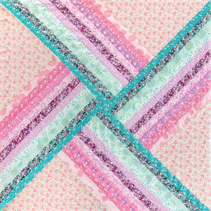 - Full Quilt Kit Option: All of the fabrics needed to create the Adventureland Quilt top (as shown in the photo). Plus backing (Eve Enchanted) and Binding (Capel Pepper Fling). All fabrics featured are from our Sweetheart Collection.