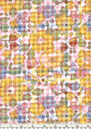 Inspired by elements of the Punk movement aesthetic, Betsy Check transforms Liberty’s beloved classic Betsy. Originally created in 1933, the small, stylized floral pattern is now layered with a vibrant summery plaid, creating a striking and playful clash of styles.
