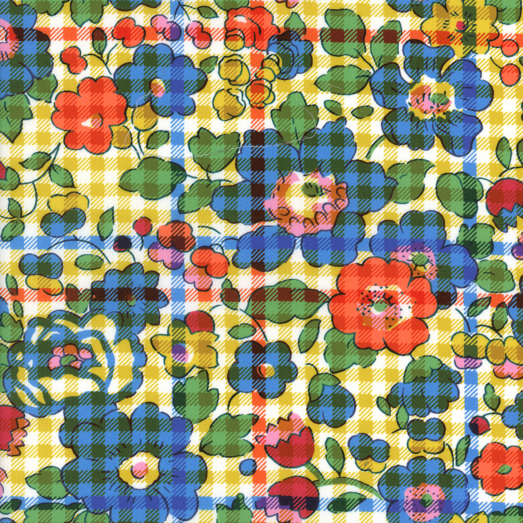 Inspired by elements of the Punk movement aesthetic, Betsy Check transforms Liberty’s beloved classic Betsy. Originally created in 1933, the small, stylized floral pattern is now layered with a vibrant summery plaid, creating a striking and playful clash of styles.