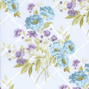 Inspired by a Liberty furnishing print from the 1980s, Blenheim Garden was meticulously hand-painted in the Liberty studio, capturing the refined elegance of period-inspired gardens. Evoking the grandeur of stately homes and their fragrant terrace gardens, the design presents sumptuous bouquets of roses, marguerites, and poppies in full bloom. A delicate leafy trellis threads through the composition, subtly intertwining geometry with Regency-style floral motifs, to create a sense of cultivated charm.