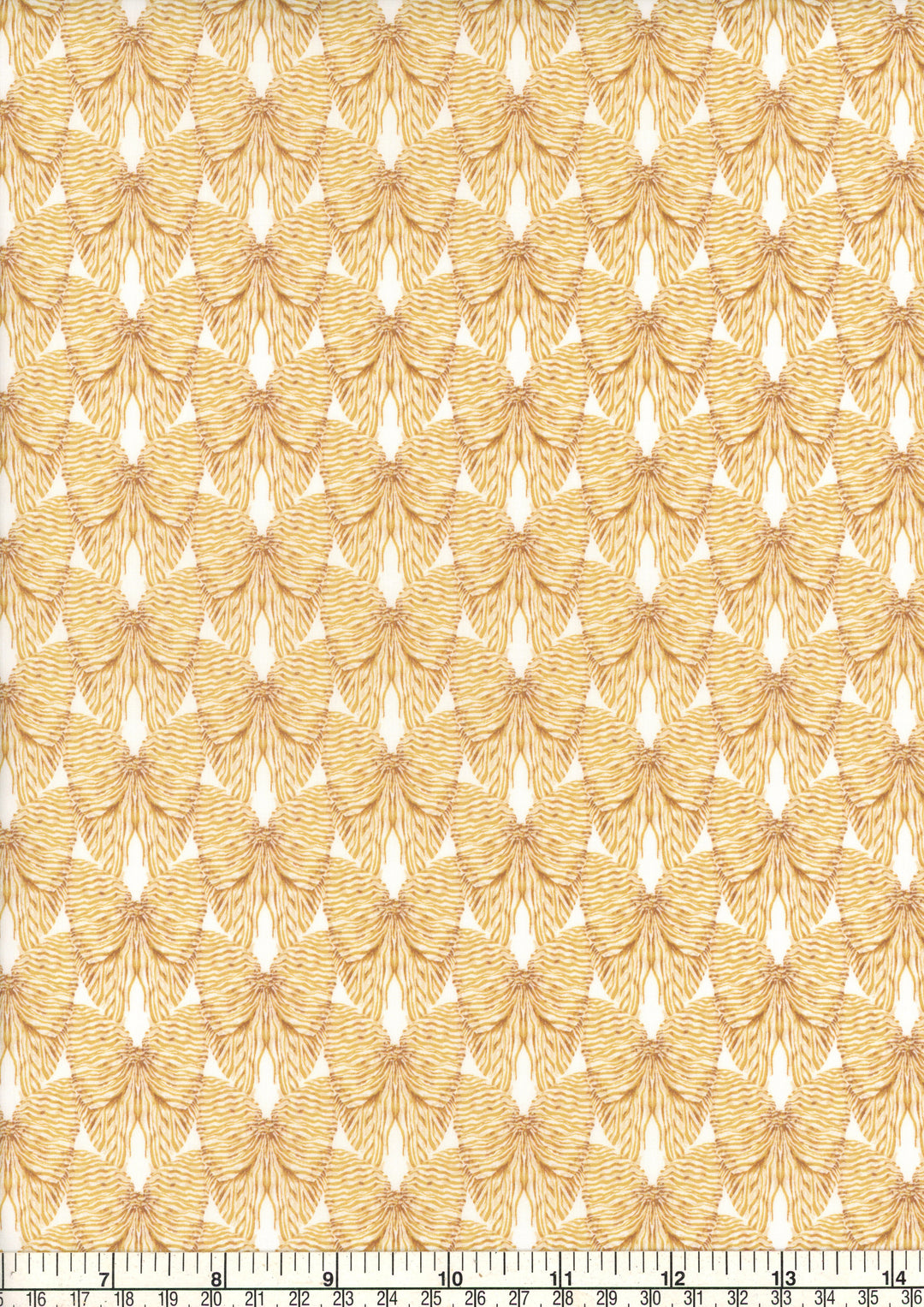 Inspired by the extravagant bows used to accessorize Regency dresses, Bustle and Bow was hand-painted in soft gouache by the Liberty design studio. These subtle, three-dimensional bows hint at the rich cloth, intricate frills, and furbelows typical of the Regency style.
