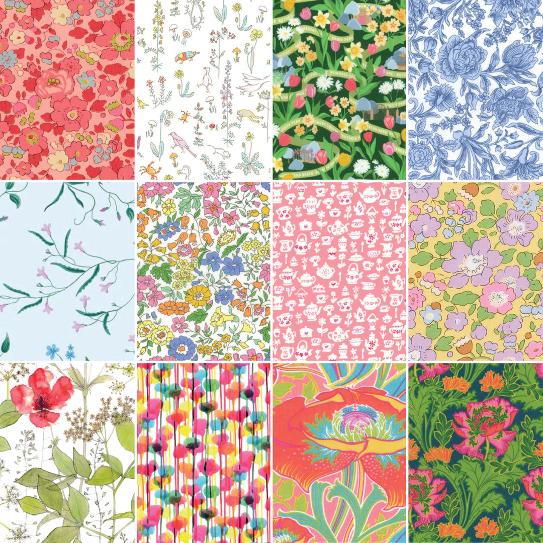 Perfect for quilting and small projects. Each pack of fabric contains 12 prints, as shown in the photograph. 100% Cotton, Liberty of London Tana Lawn.