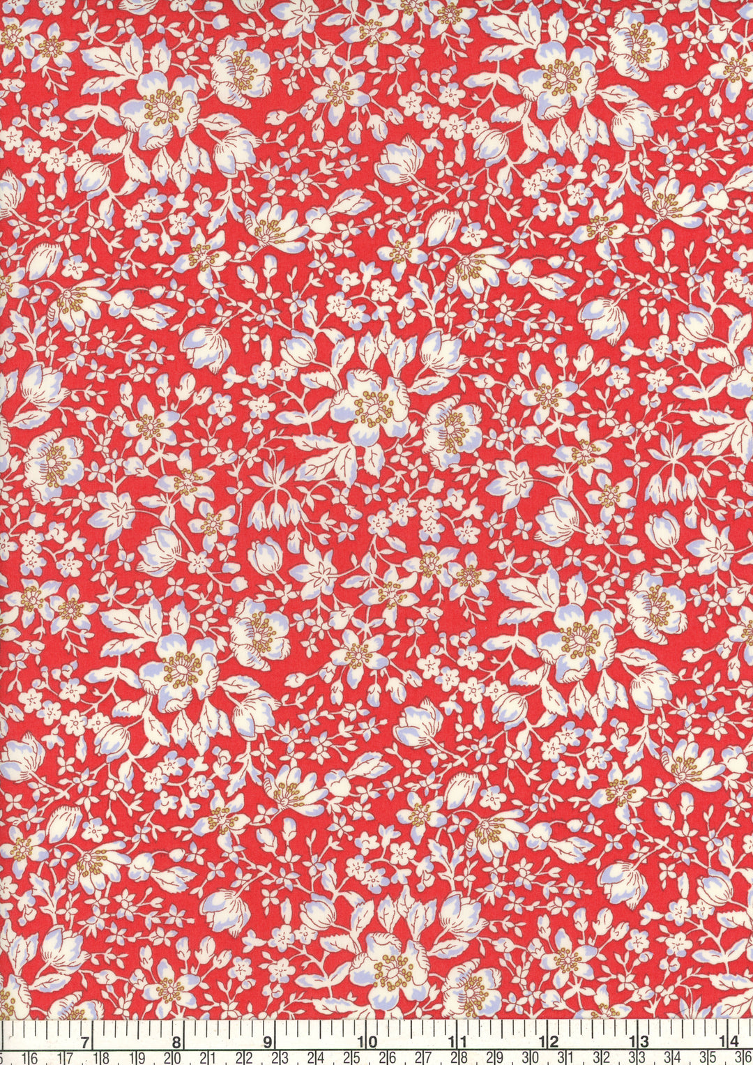 Originally created by Liberty in 1939, Lizzy is a versatile and timeless floral, defined by its monochrome shading and delicate outlines set against colored backgrounds. Its intricate trails of blossoms, buds, and roses appear to shimmer like dazzling lights or dangling jewels, casting a sense of understated glamour.