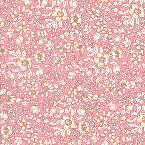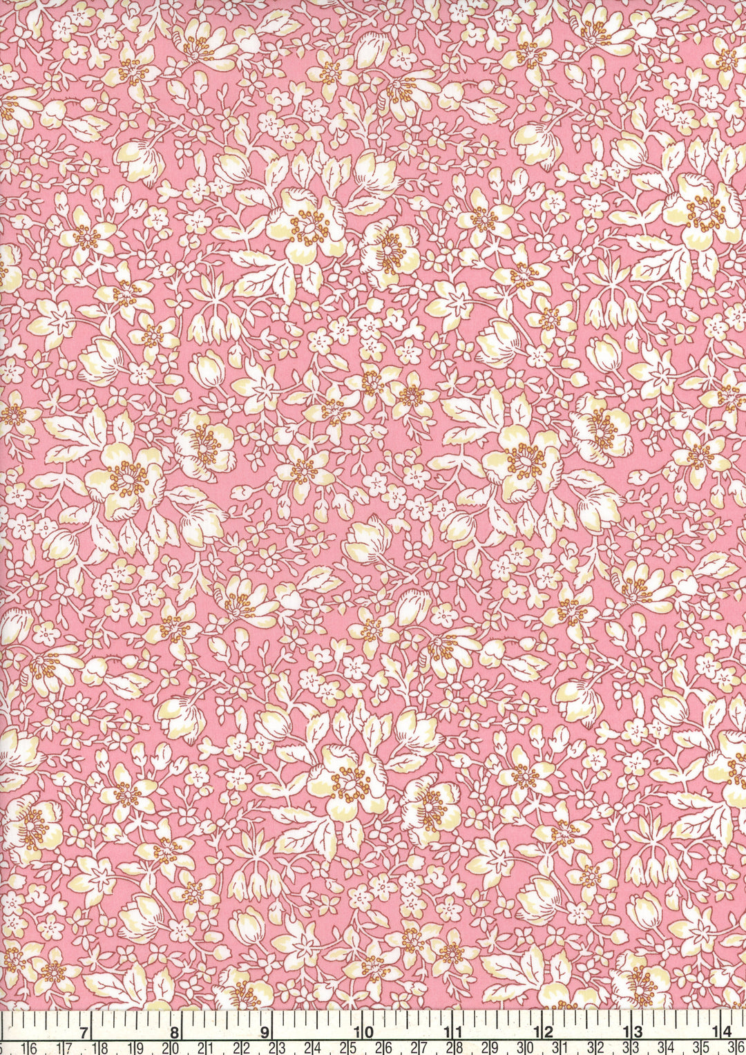 Originally created by Liberty in 1939, Lizzy is a versatile and timeless floral, defined by its monochrome shading and delicate outlines set against colored backgrounds. Its intricate trails of blossoms, buds, and roses appear to shimmer like dazzling lights or dangling jewels, casting a sense of understated glamour.