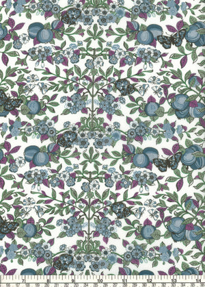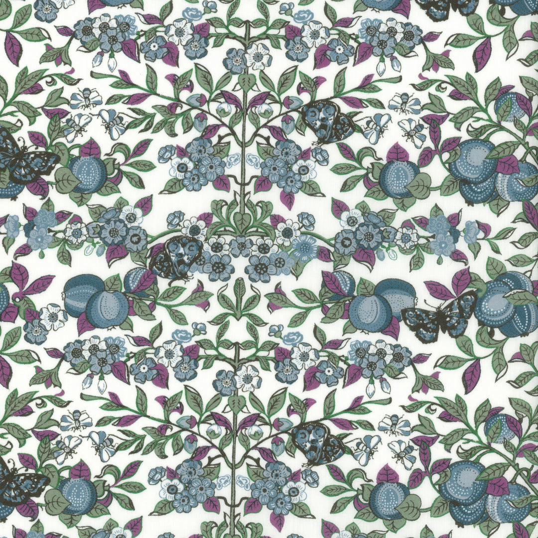 Embracing a quintessential Arts & Crafts aesthetic, the original design for Orchard was created in 1976 and showcases a mirrored trail of graceful leafy branches and fluttering butterflies, interspersed with clusters of blossom flowers and citrus fruits.