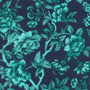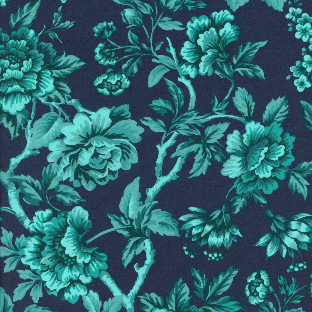 Regency Trail honors Liberty’s illustrious legacy of Tree of Life-style designs, drawing inspiration from a hand-painted artwork dating back to 1969. Meticulously reimagined, the design is characterized by trailing branches adorned with majestic peonies, chrysanthemums, carnations, blossom, and fuchsia, nestled among lush foliage. An interplay of tonal shades adds contrast, depth, and definition, enveloping the pattern in an aura of mystery and refinement.
