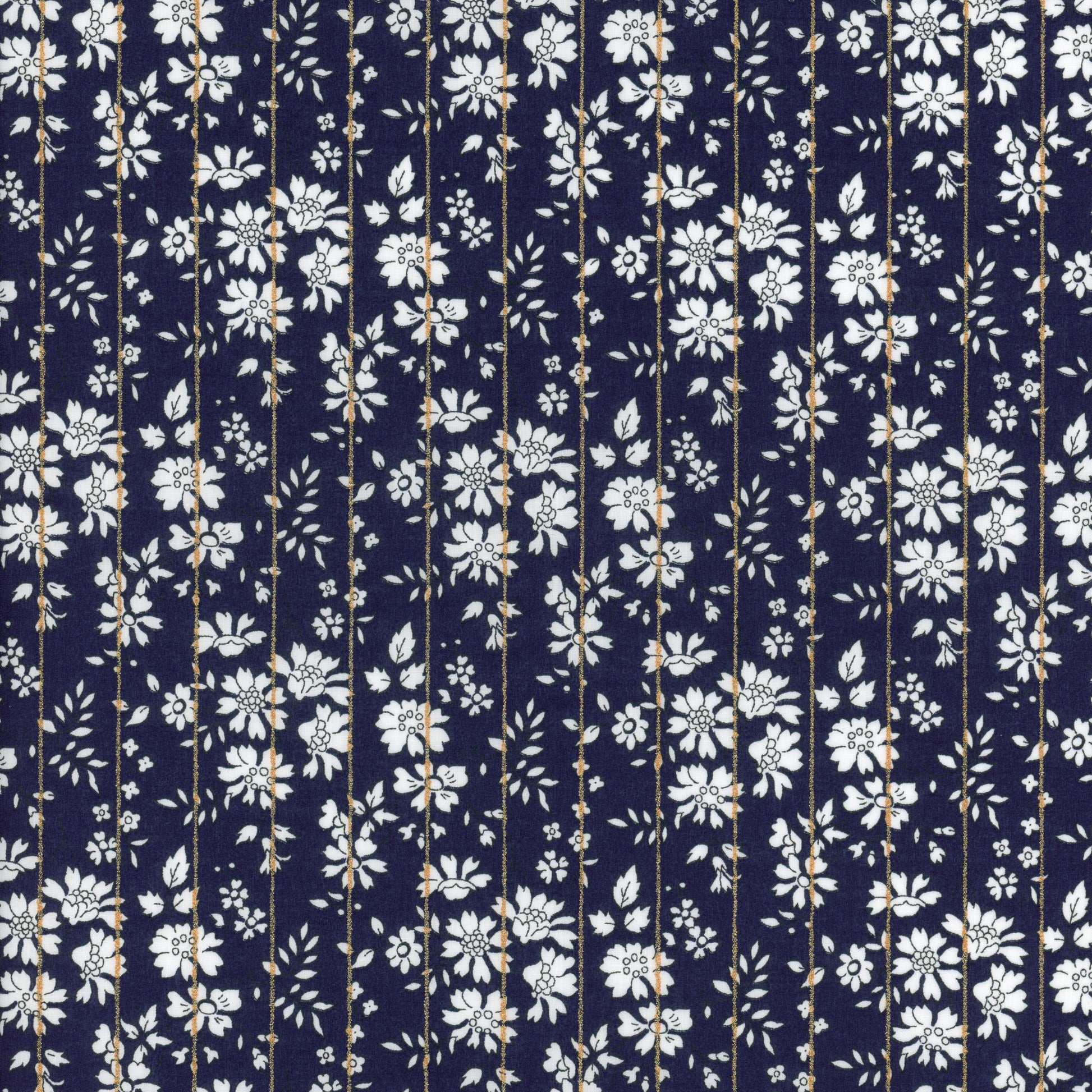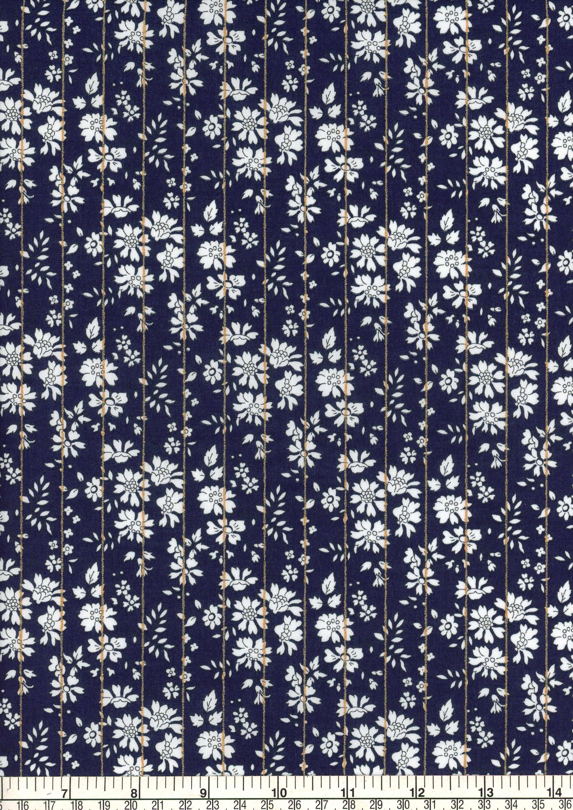 Liberty Fabrics Tana Lawn®. Classic Capsule 2024 Collection. Approximately 53" wide. 100% cotton. This fabric features metallic gold stripes.