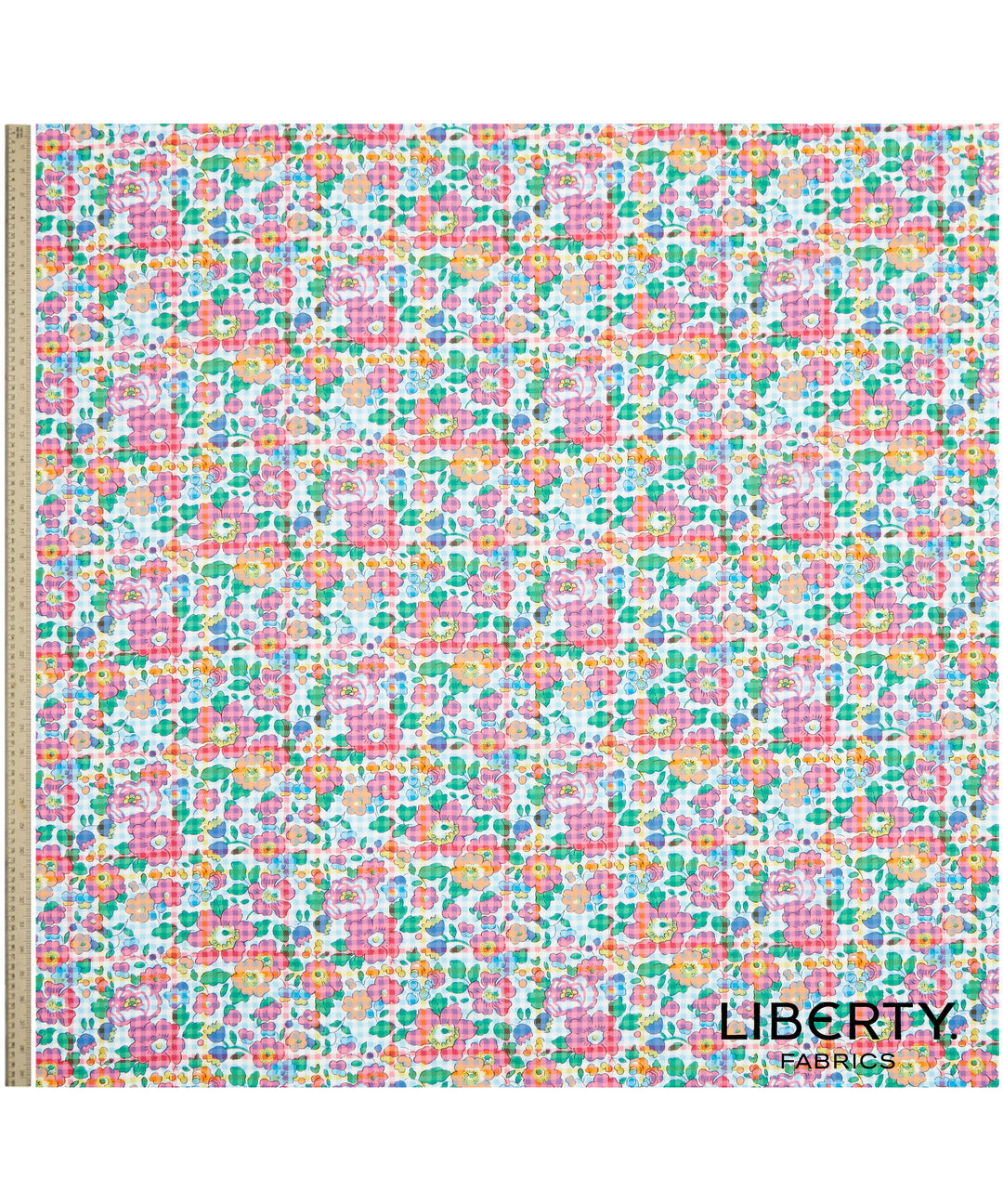 Inspired by elements of the Punk movement aesthetic, Betsy Check transforms Liberty’s beloved classic Betsy. Originally created in 1933, the small, stylized floral pattern is now layered with a vibrant summery plaid, creating a striking and playful clash of styles.