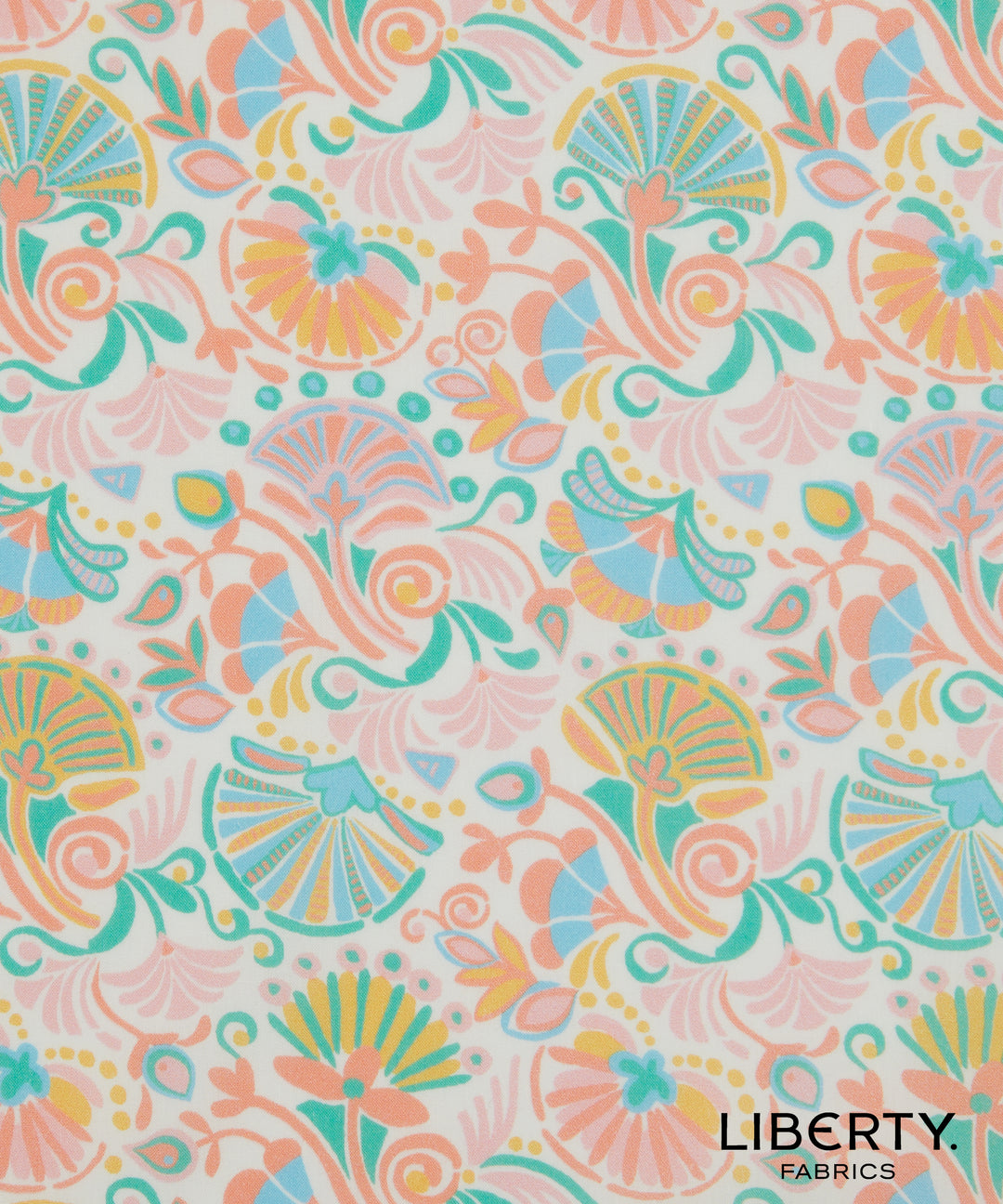 Inspired by the rich history and opulent legacy of Cleopatra, the famous Egyptian queen, Cleopatra Carnival is a captivating print that blends stylized florals with fan-shaped motifs reminiscent of ancient Egyptian art. Hand-painted in the Liberty design studio, this expressive pattern is a vibrant celebration of culture and femininity.