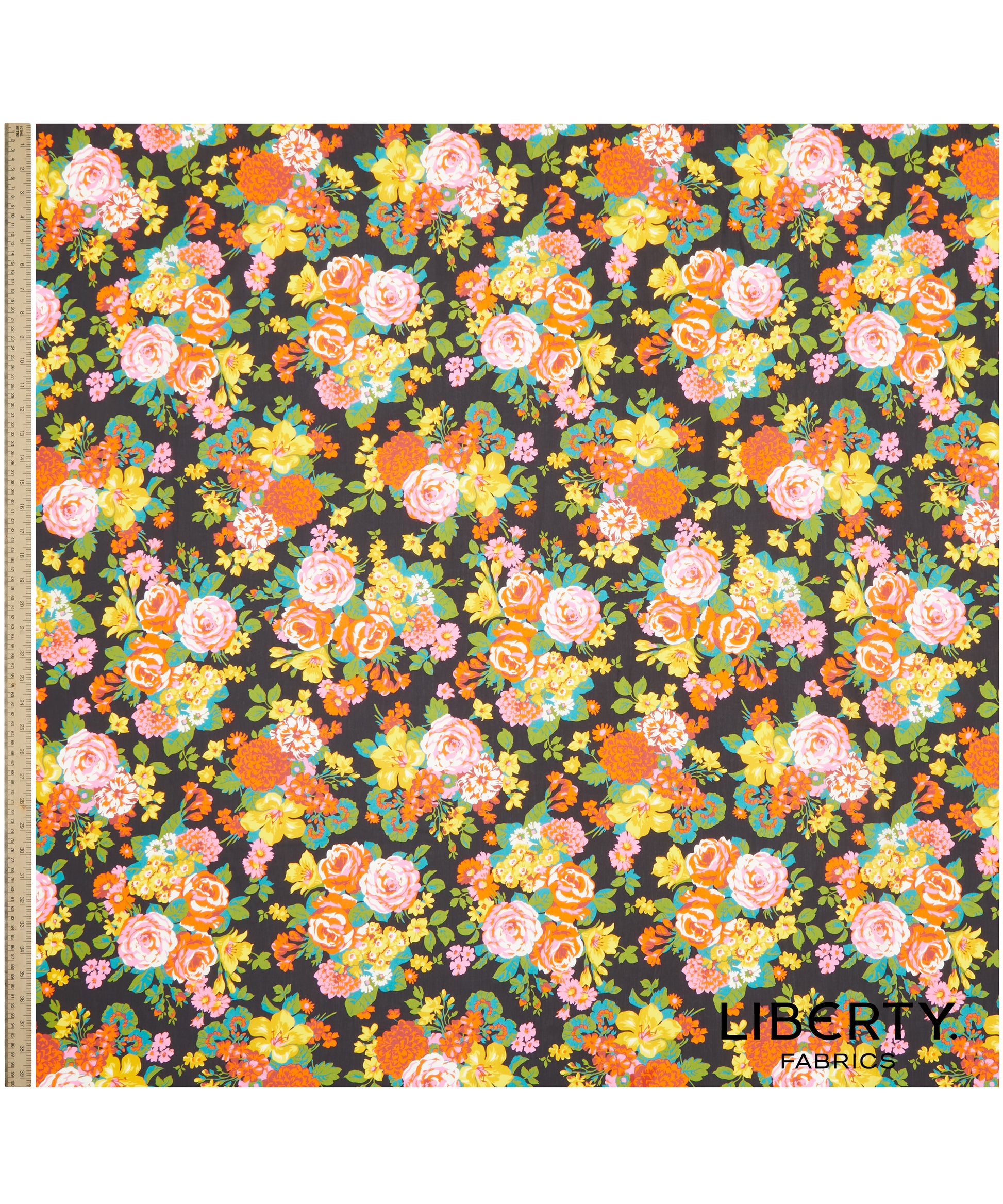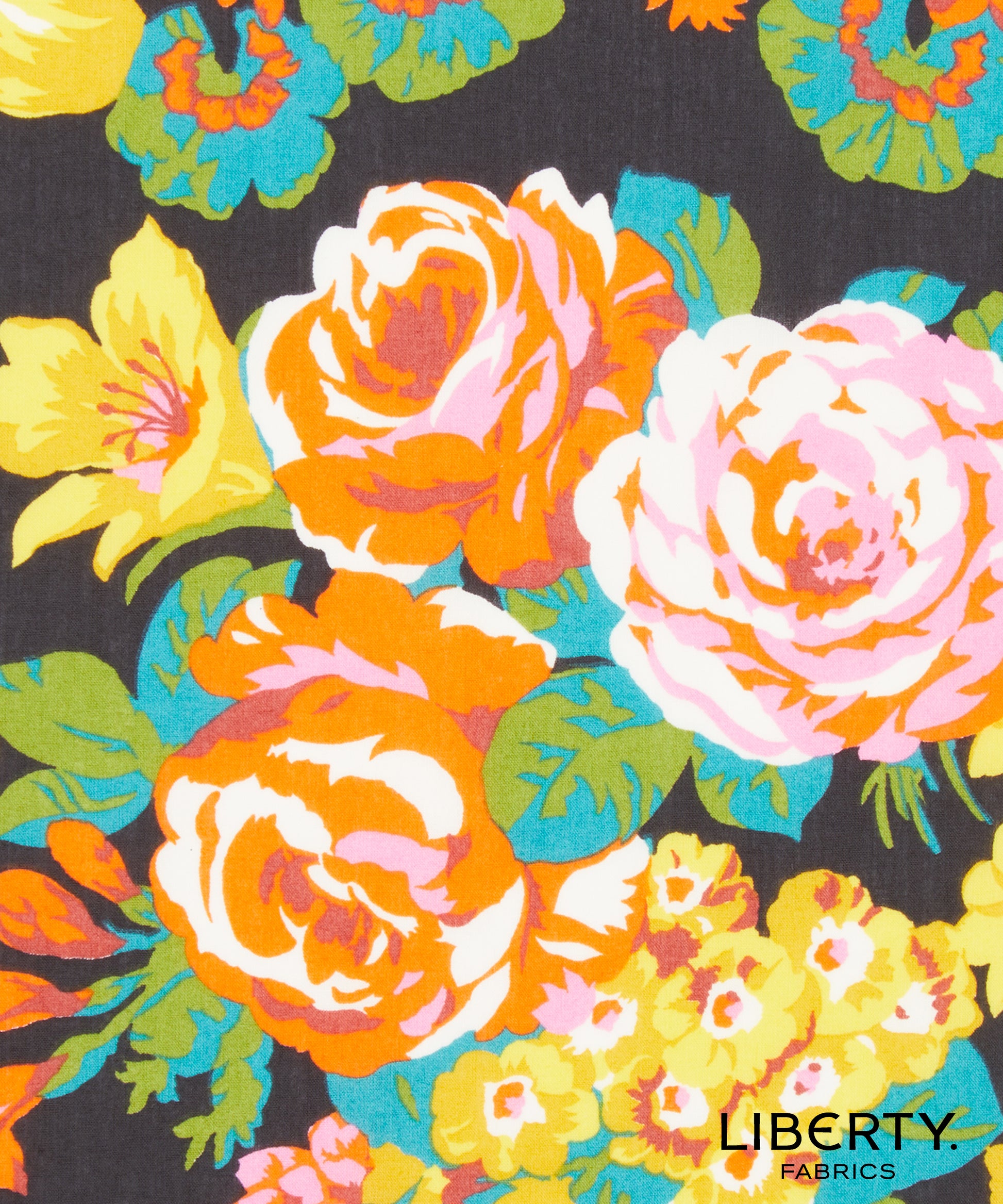 Originally hand-painted in 1990 and printed for Liberty’s seasonal collections in 1992 and 1995, Flower Crown has been reimagined for the 21st century. Inspired by the legendary artist, Frida Kahlo, this design celebrates the vibrant floral crowns she often wore in her self portraits. These remarkable bouquets showcase roses, daisies, geraniums, and lilies among many other flowers.