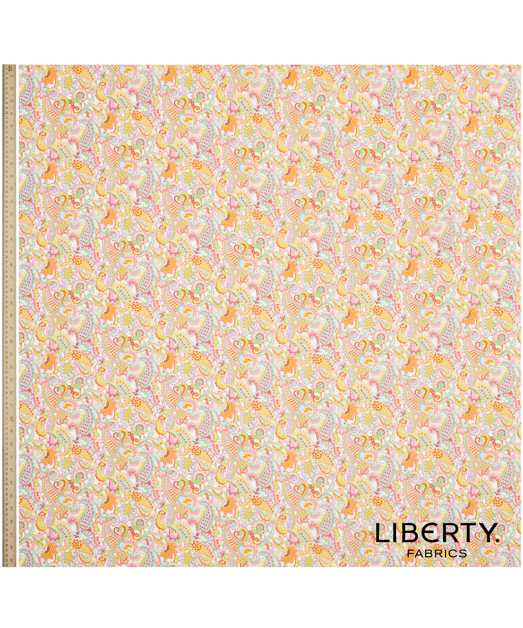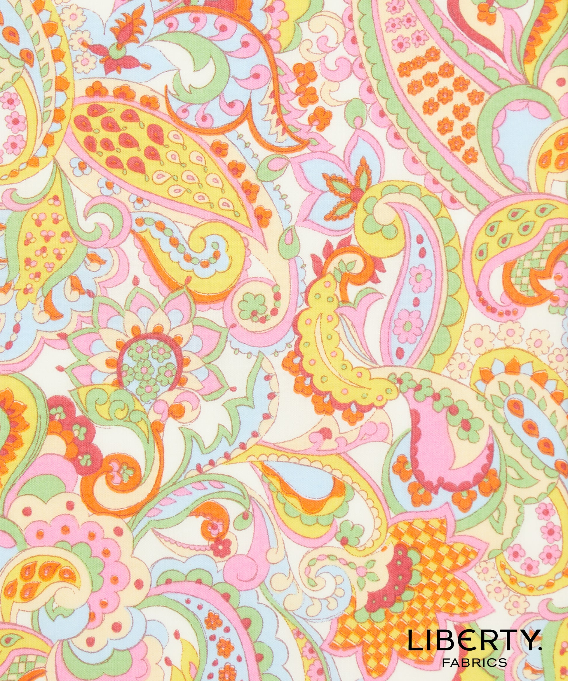 Drawing on the ecstatic energy of the stylized paisleys of the '60s and '70s, this print, originally dating from 1966, was meticulously redrawn and recolored in the Liberty design studio. Once donned by the extravagant musicians of the day, its expressive style mirrors the era’s unconventional idealizations.