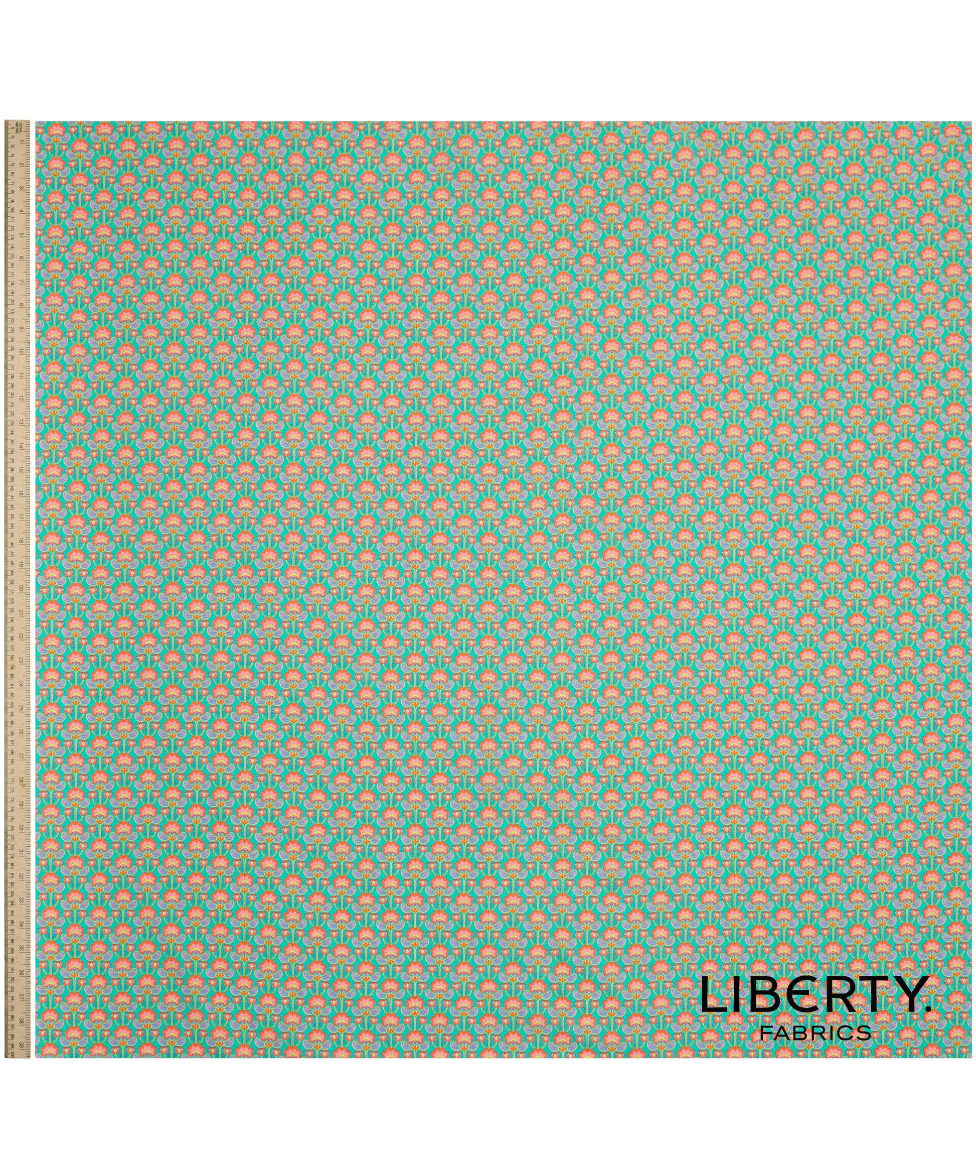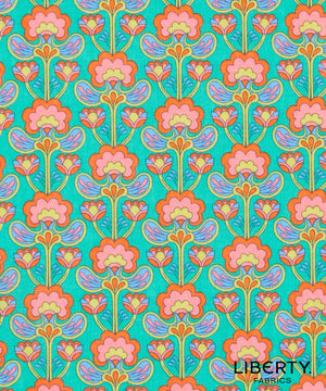 Evocative of the flamboyant fashion of the 1960s peacock revolution, this small-scale bohemian floral captures the era’s departure from traditional tailoring towards a more expressive, experimental style. Originally designed by Liberty in 1965 during the Art Nouveau revival years, Peacock Posy showcases a vibrant floral motif arranged in a strikingly graphic, repeating pattern.