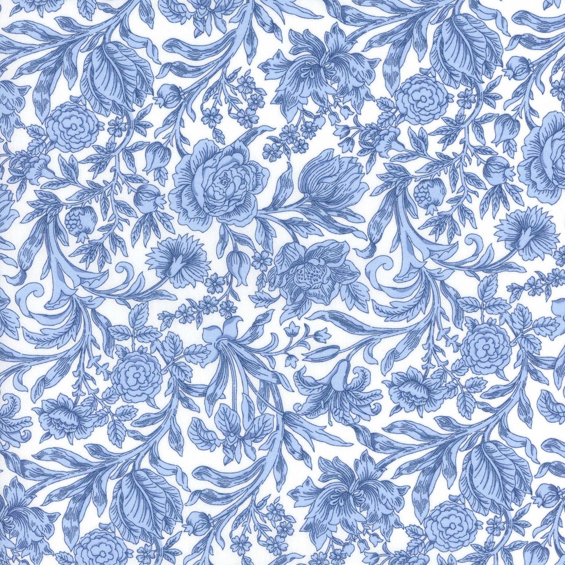 An ornamental monochrome floral print with roses, lilies, pinks, tulips, and pomegranates hiding amongst its trailing foliage. Sambourne was originally created for Liberty in 1971 as a large-scale, hand painted artwork.