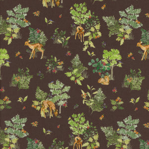 Capturing a series of charming vignettes within an enchanted forest, this design is a celebration of the fallow deer, a symbolic animal in many folk stories and Fairy tales. Hand painted in the Liberty Design Studio using watercolours, fragrant blossoms and chattering blue tits have been added amongst the ancient woodland trees and foliage.