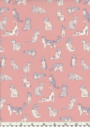 An abundance of characterful cats in a variety of breeds such as Ragdoll, British Shorthair, Maine Coon, Abyssinian, Bengal and Burmese, prowl, pose, stretch, and relax in this charming conversational design. Sketchy, ink pen illustrations drawn in the Design Studio have been carefully positioned on bold areas of ground colour to frame each feline.