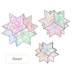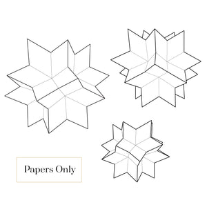 You will receive all of the pre-cut papers to create 3 Moravian stars (small, medium large).