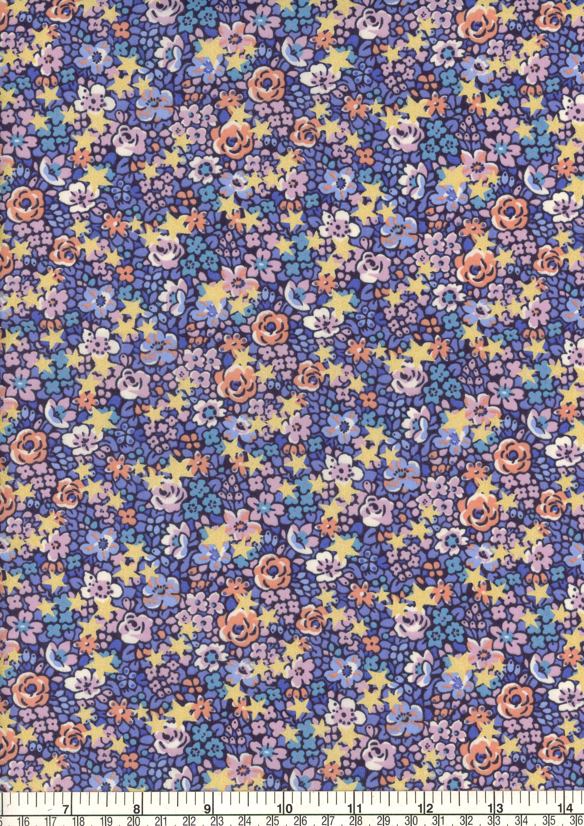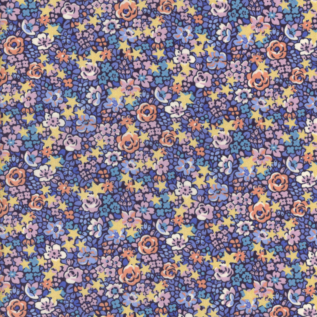 Liberty Christmas 2024. Approximately 53" wide. 100% Organic cotton, Tana Lawn®. This fabric features metallic gold stars.