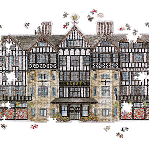 Liberty Fabrics is known for its floral and graphic prints and the offering of innovative and eclectic designs. The Liberty Store 750 Piece Shaped Puzzle from Galison has its distinctive Tudor building on one side and a floral pattern on the other.