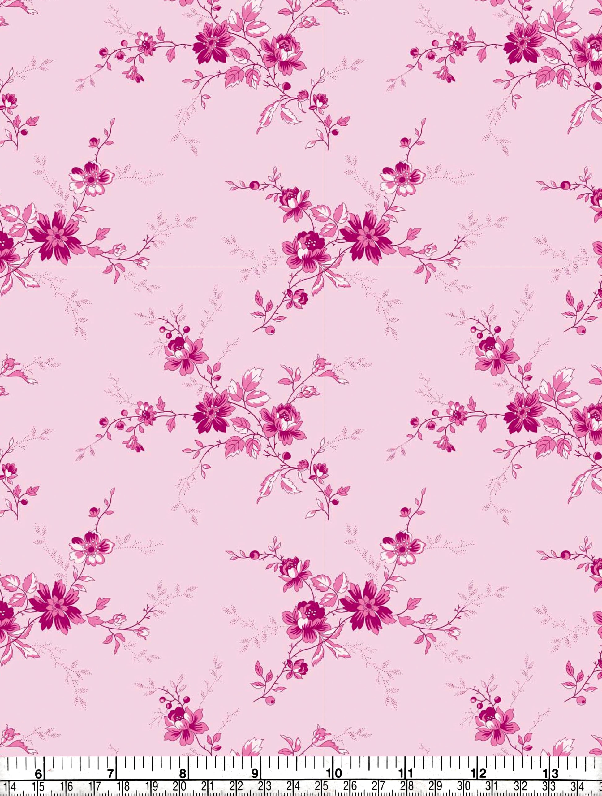 Adapted from a selection of 1880s fabrics found in an archival Liberty book, this charming pattern is brimming with elaborate floral motifs and intricate textures. Emulating copperplate printing impressions that were widely used during the 18th century, Amelie Luise has been rendered in a crisp outline. Embellished with roses, berries, and pinks, the design’s wispy sprays form loosely undulating trellises.