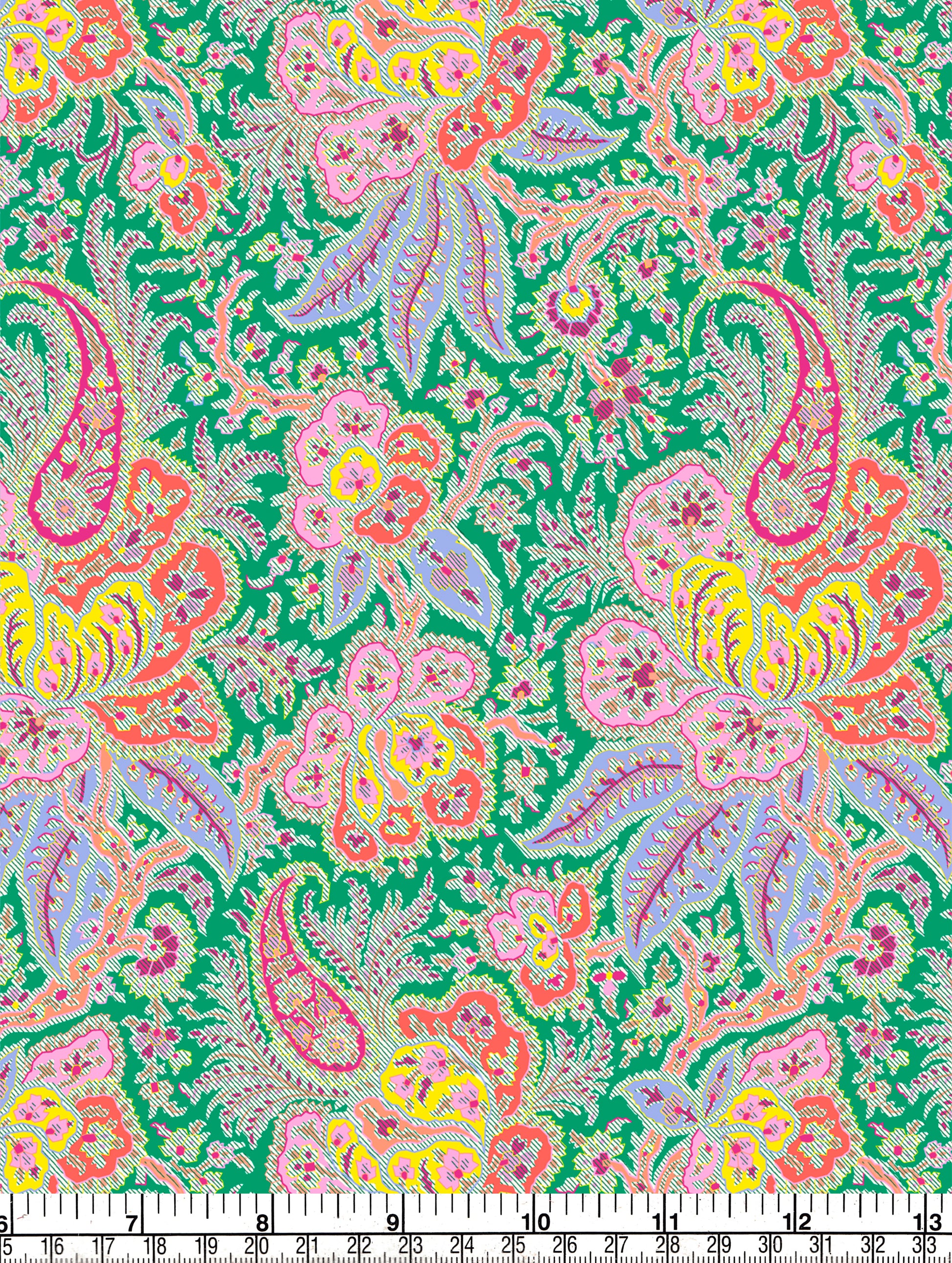 Liberty has a beautiful collection of 19th century paisley style archive designs, which have always pro- vided inspiration for our designers. This beautifully coloured and carefully reconstructed botanical pais- ley is reminiscent of traditional Kashmir scarves and block-printed Indian textiles. Its floating garden is adorned with luxurious flowers, decorated leaves and feathery fronds.