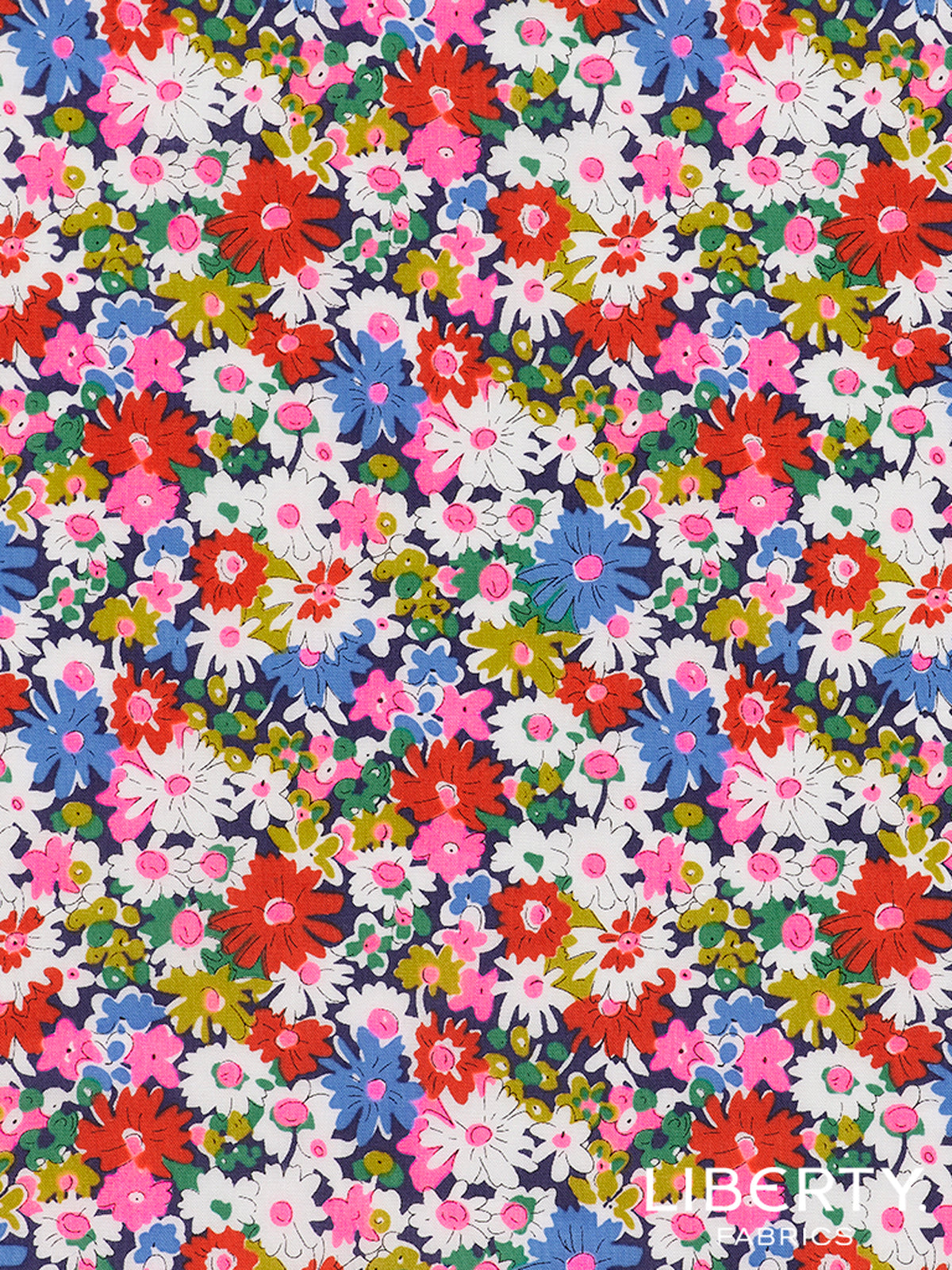 Libby is a layout of dense, simplified daisies, drawn with a very fine outline. Originally hand painted during the 1930s and printed at Liberty’s Merton print works, this all-over repeat pattern pays homage to the most quintessential Liberty floral style.