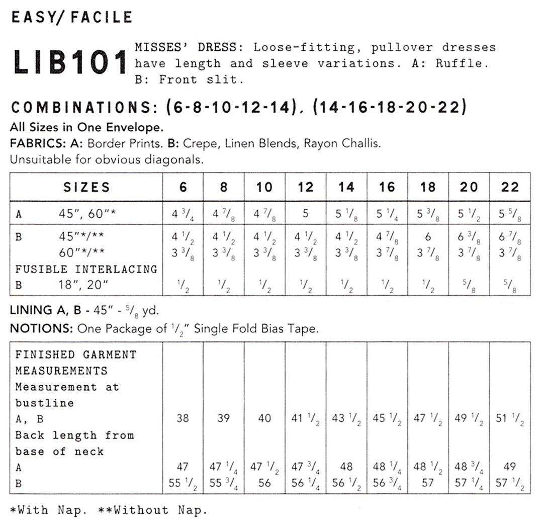Fabric and notions requirements: Please view product images for correct fabric quantities and notions.