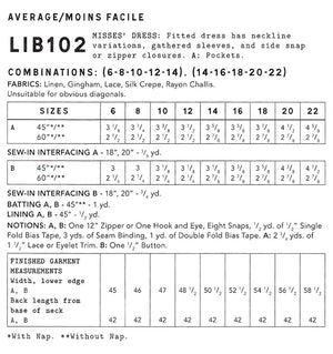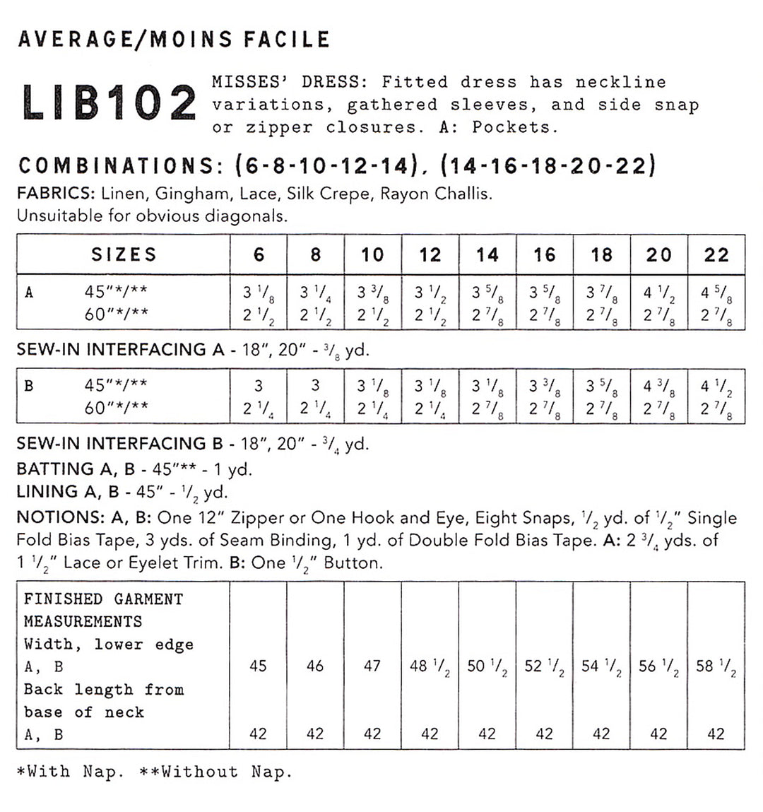 Fabric and notions requirements: Please view product images for correct fabric quantities and notions.