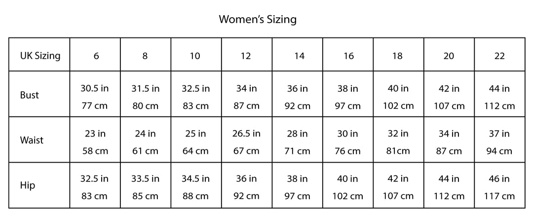 UK Sizing. Please view size chart in the product images for correct sizing.