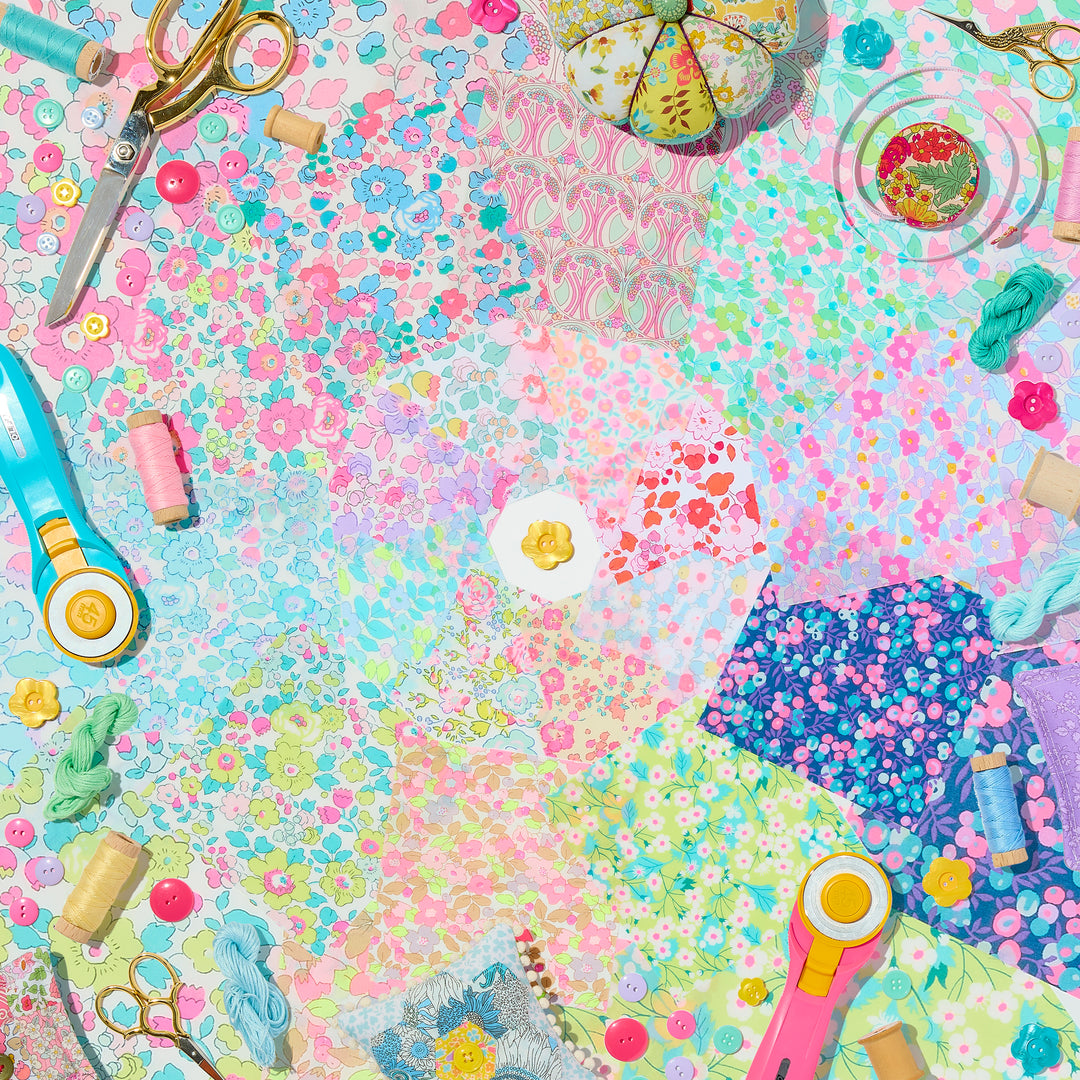 A lovely selection of Liberty Fabrics Tana Lawn. Included are 36 squares in 18 different prints (two of each print). Squares are all carefully cut by hand. 100% cotton, Liberty Fabrics Tana Lawn®.