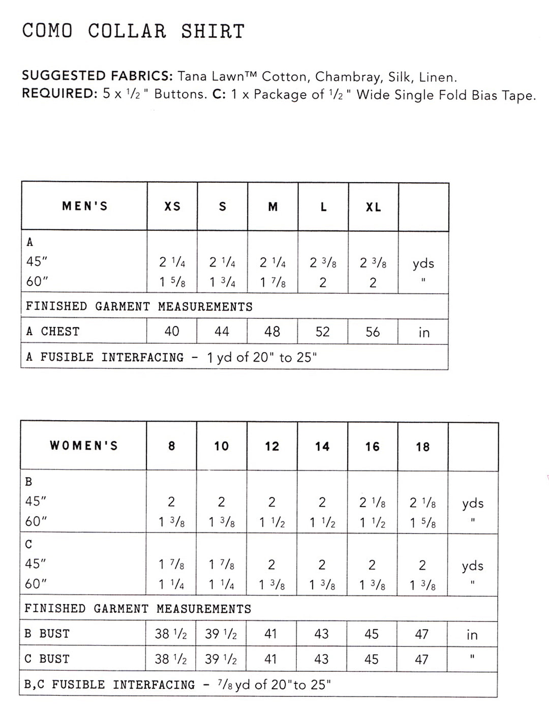 Fabric and notions requirements: Please view product images for correct fabric quantities and notions.
