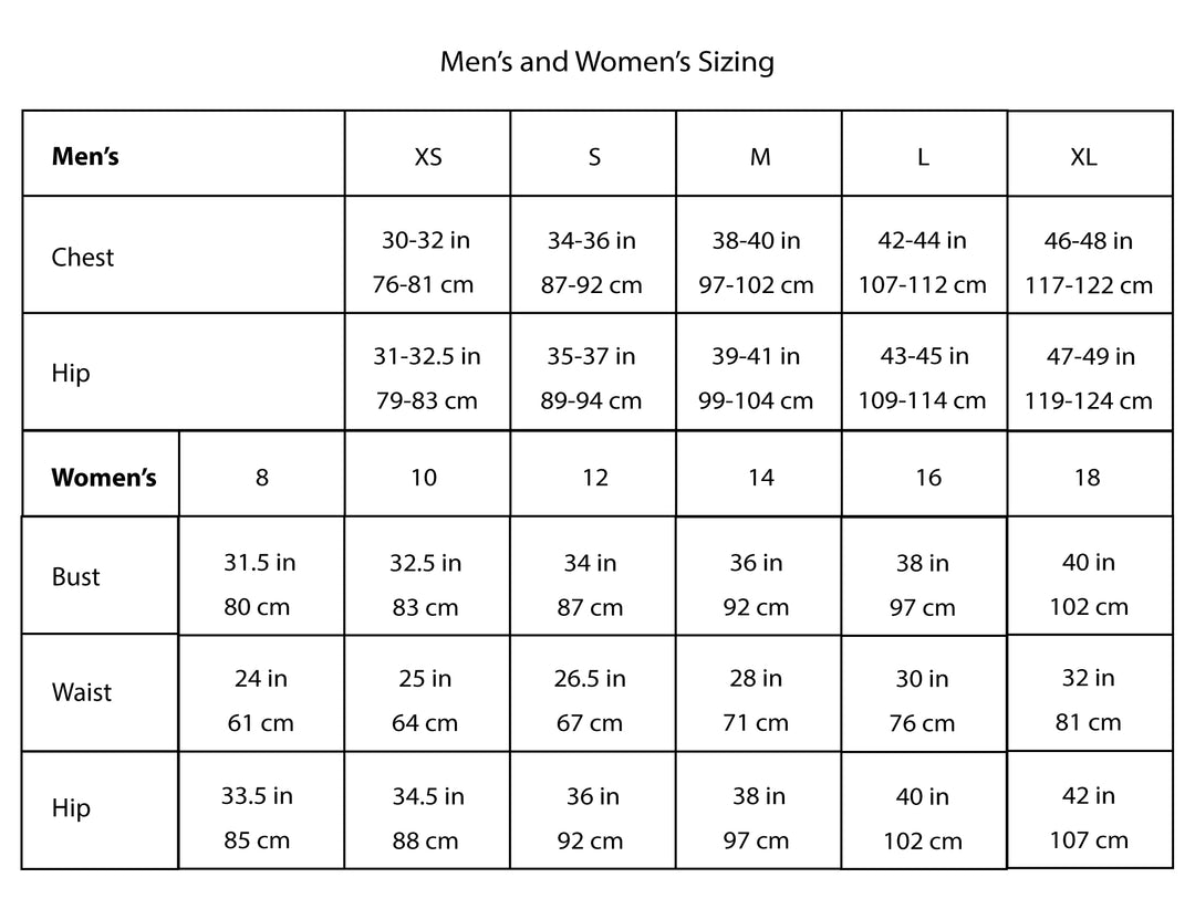 Unisex sizing: Men's XS-XL. Women's UK 8-18.