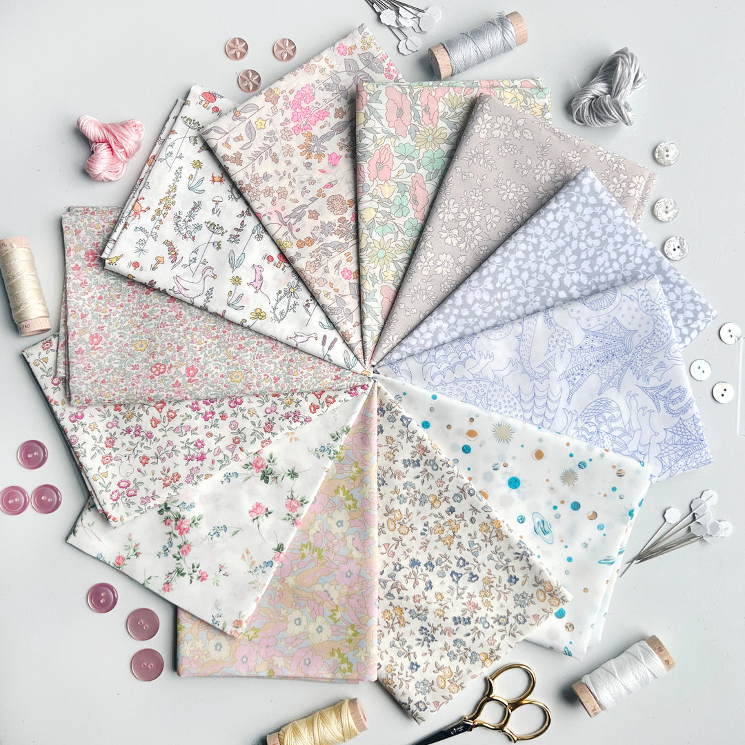 You will receive 12 unique low volume prints in a variety of Bespoke, Classic, and Special Printings. The photo is an example of the types of low volume prints that you will receive.