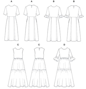 The Natasha dress creates a loose, tired shape with the option for a lightly puffed sleeve.