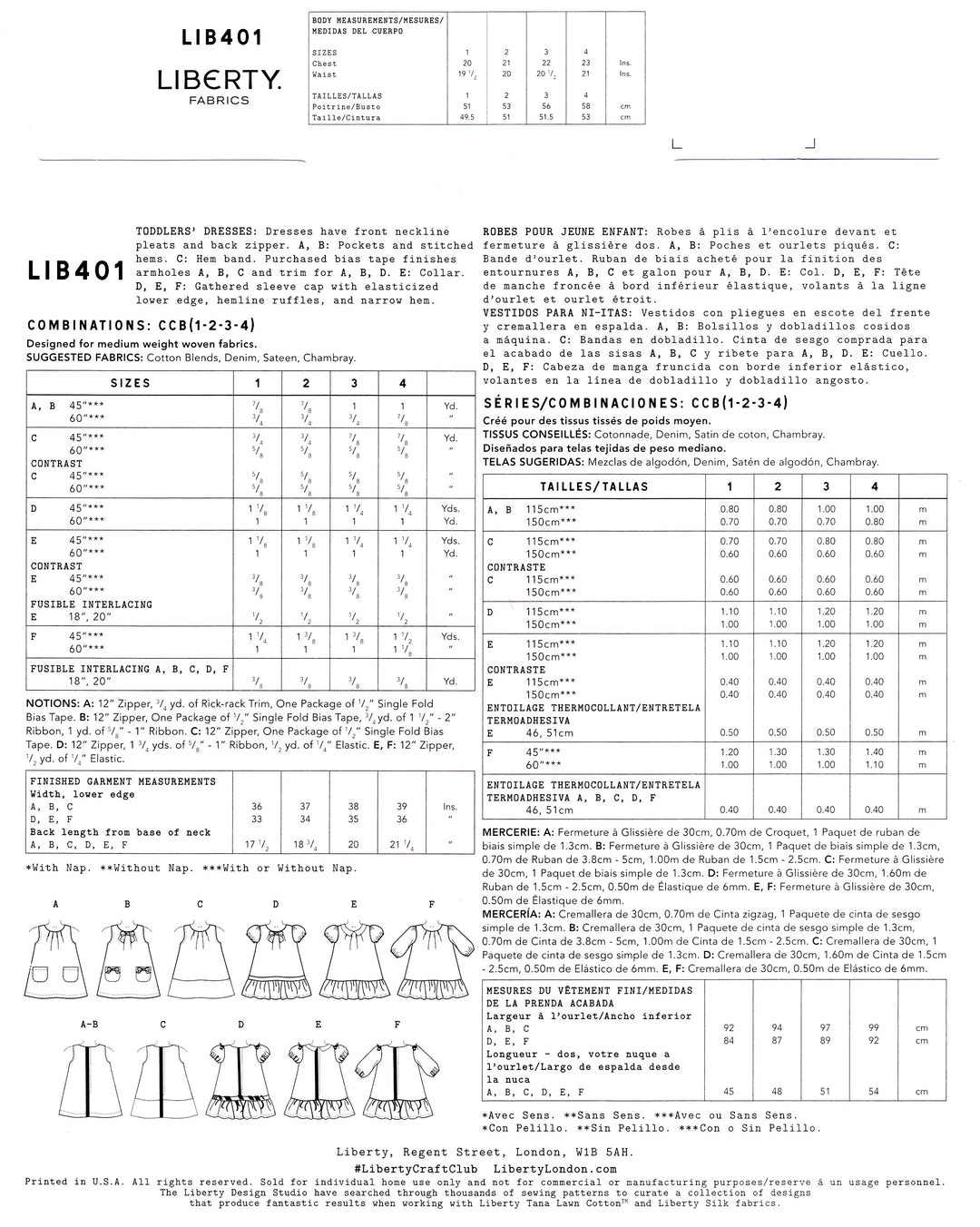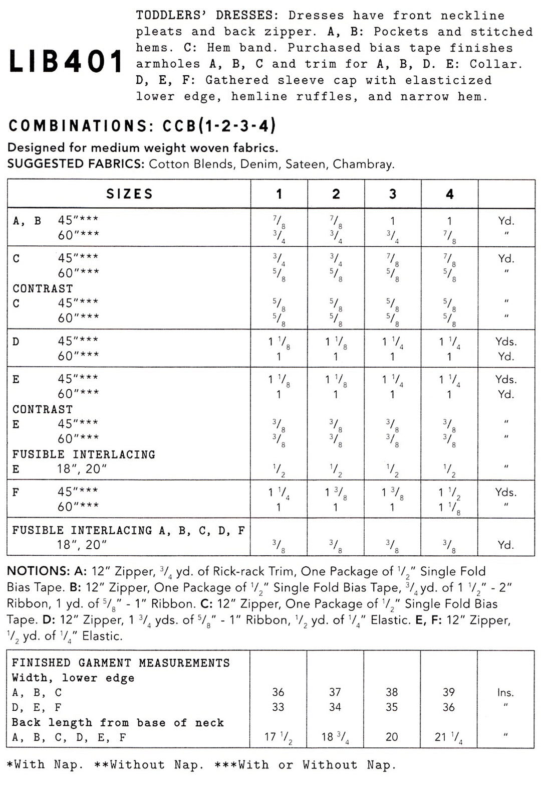Fabric and notions requirements: Please view product images for correct fabric quantities and notions.