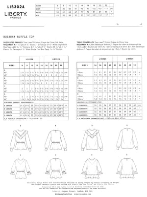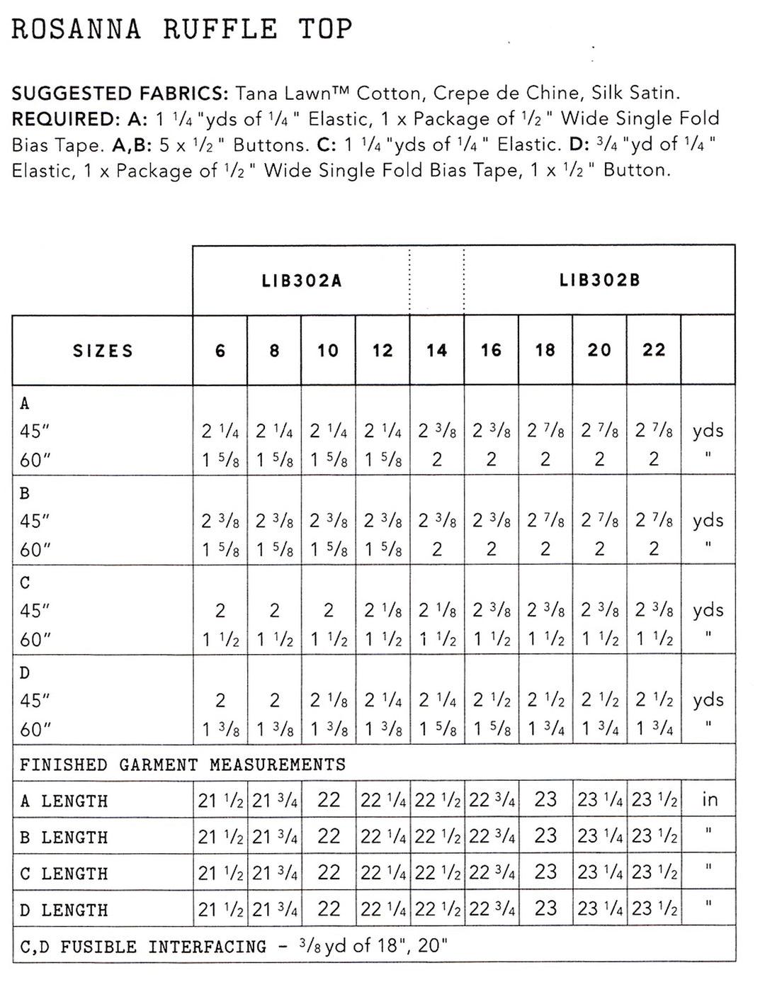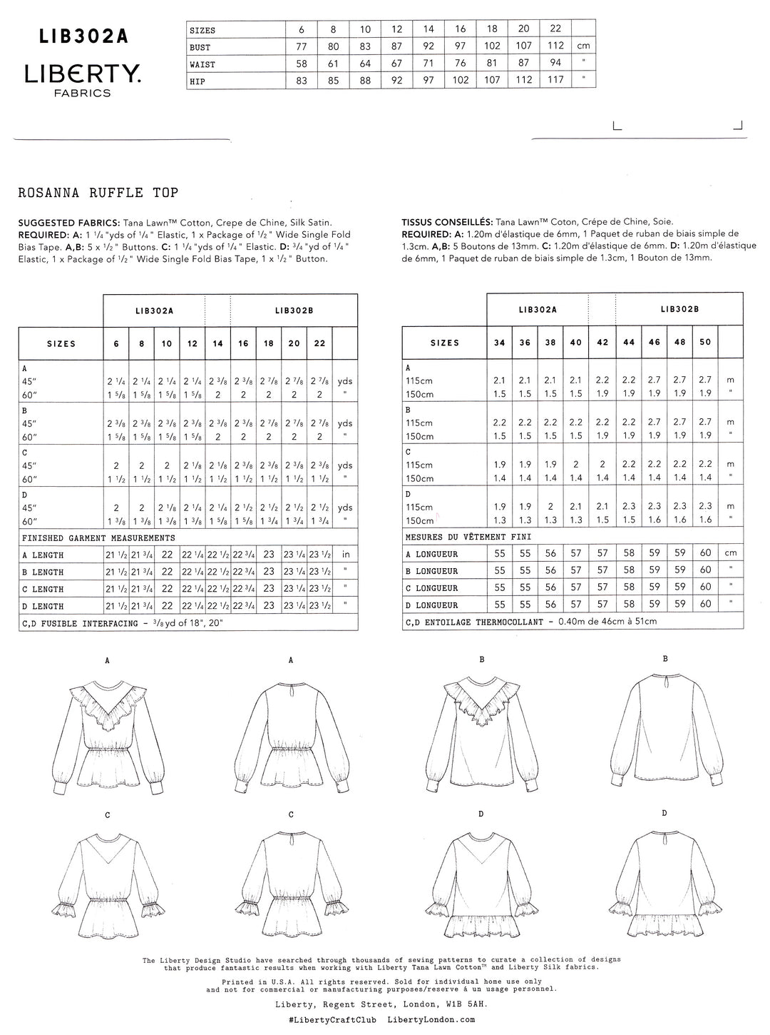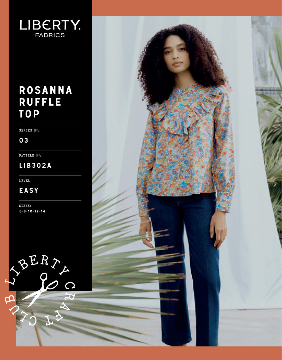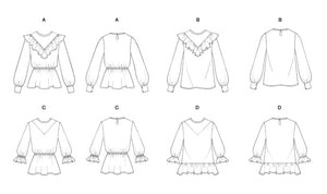 The Rosanna top can be created with a ruffled neckline, with options for frilled or standard cuffs. Available in UK Sizing: Pattern A (6-14) and Pattern B (14-22).