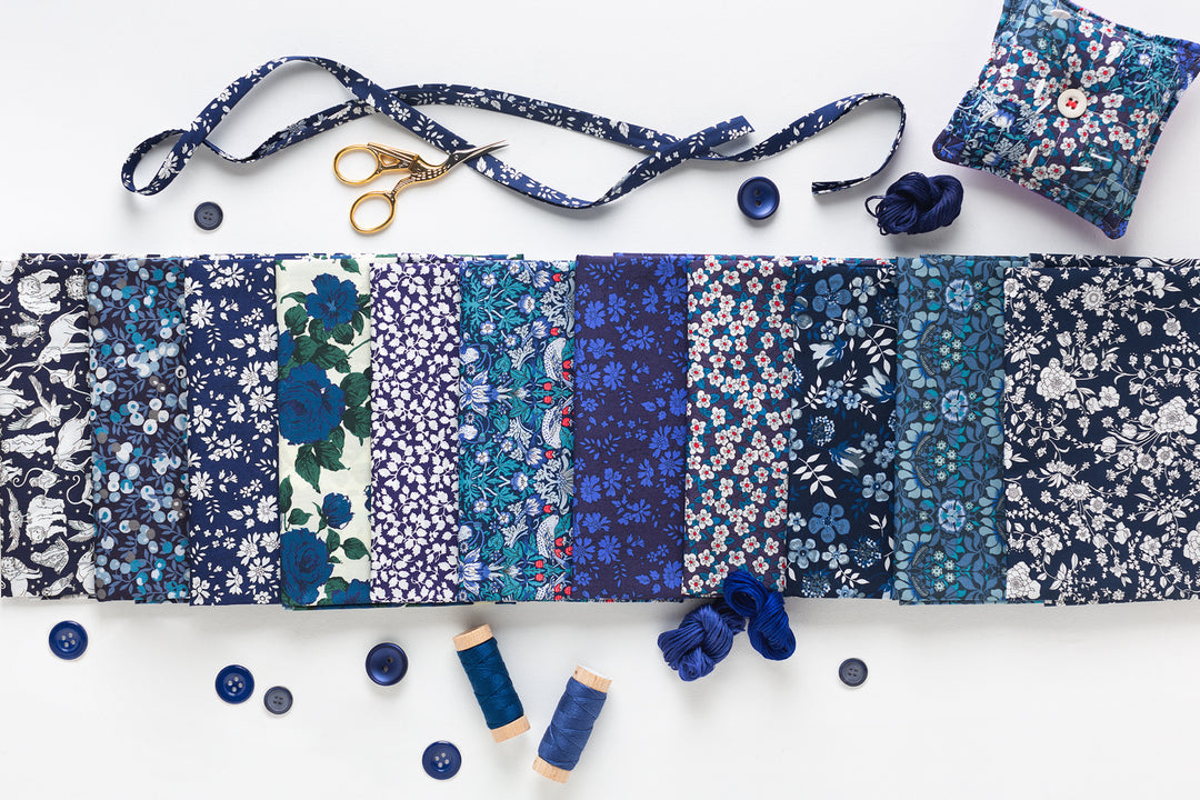 Our Navy Stash Pack is a beautiful selection of classic and seasonal fabrics, perfect for quilting and small projects. Each stash pack contains 6 Liberty Tana Lawn® prints.