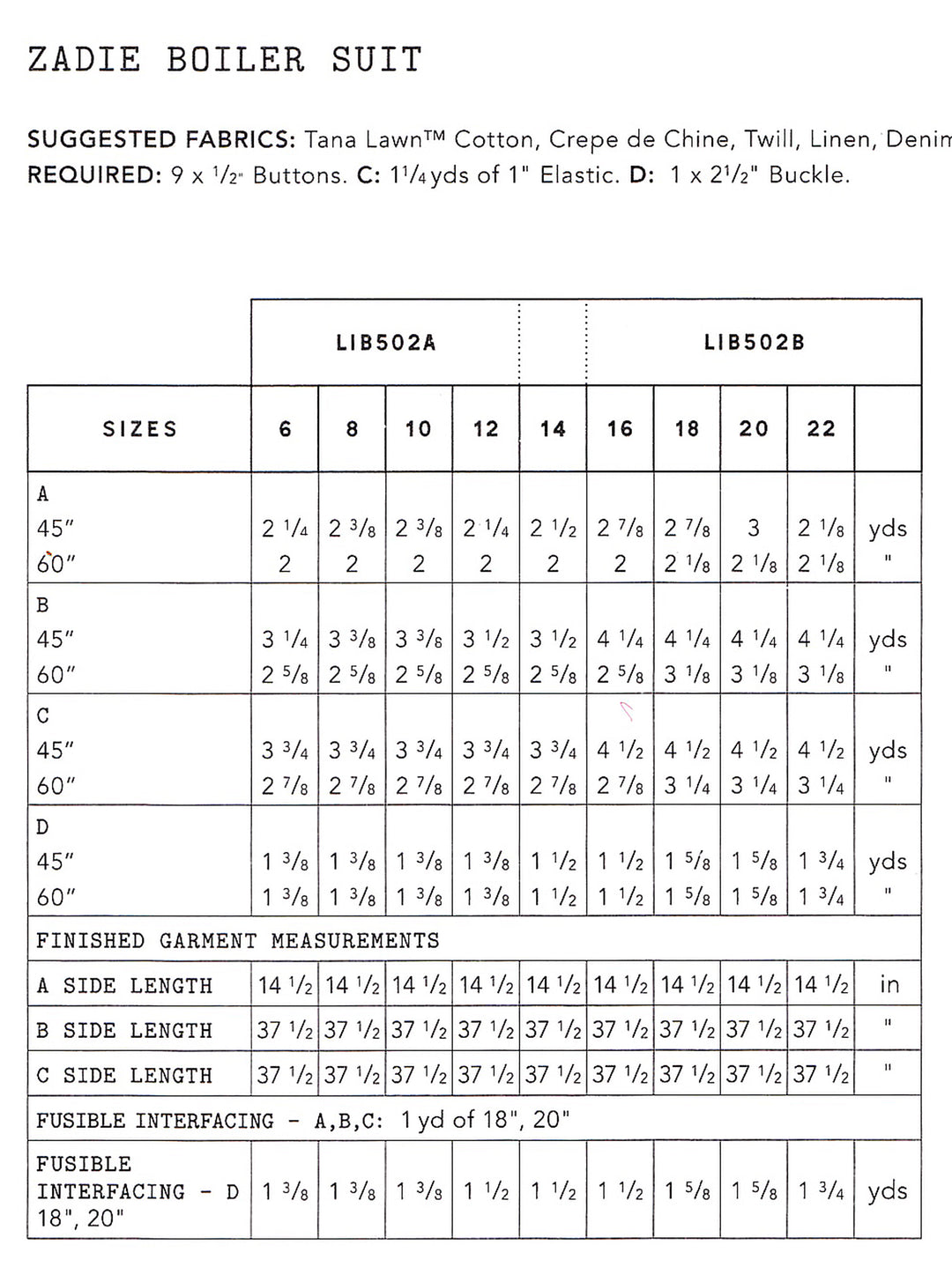 Fabric and notions requirements: Please view product images for correct fabric quantities and notions.