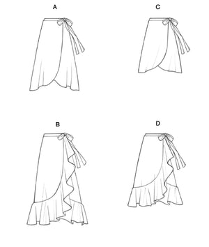 Pretty and versatile, the Zina Wrap Skirt can be constructed in a mini, midi or maxi length, either with or without a ruffle.