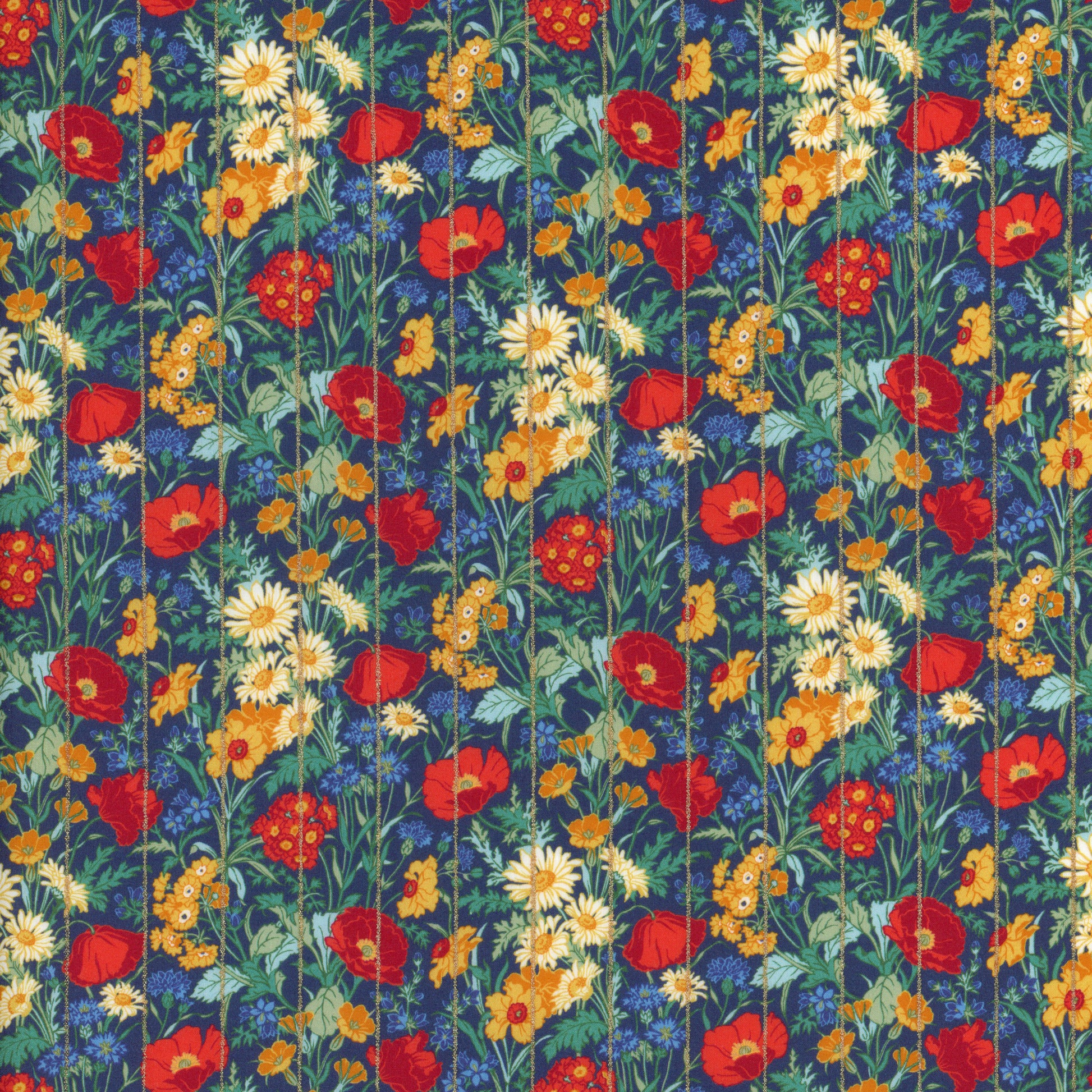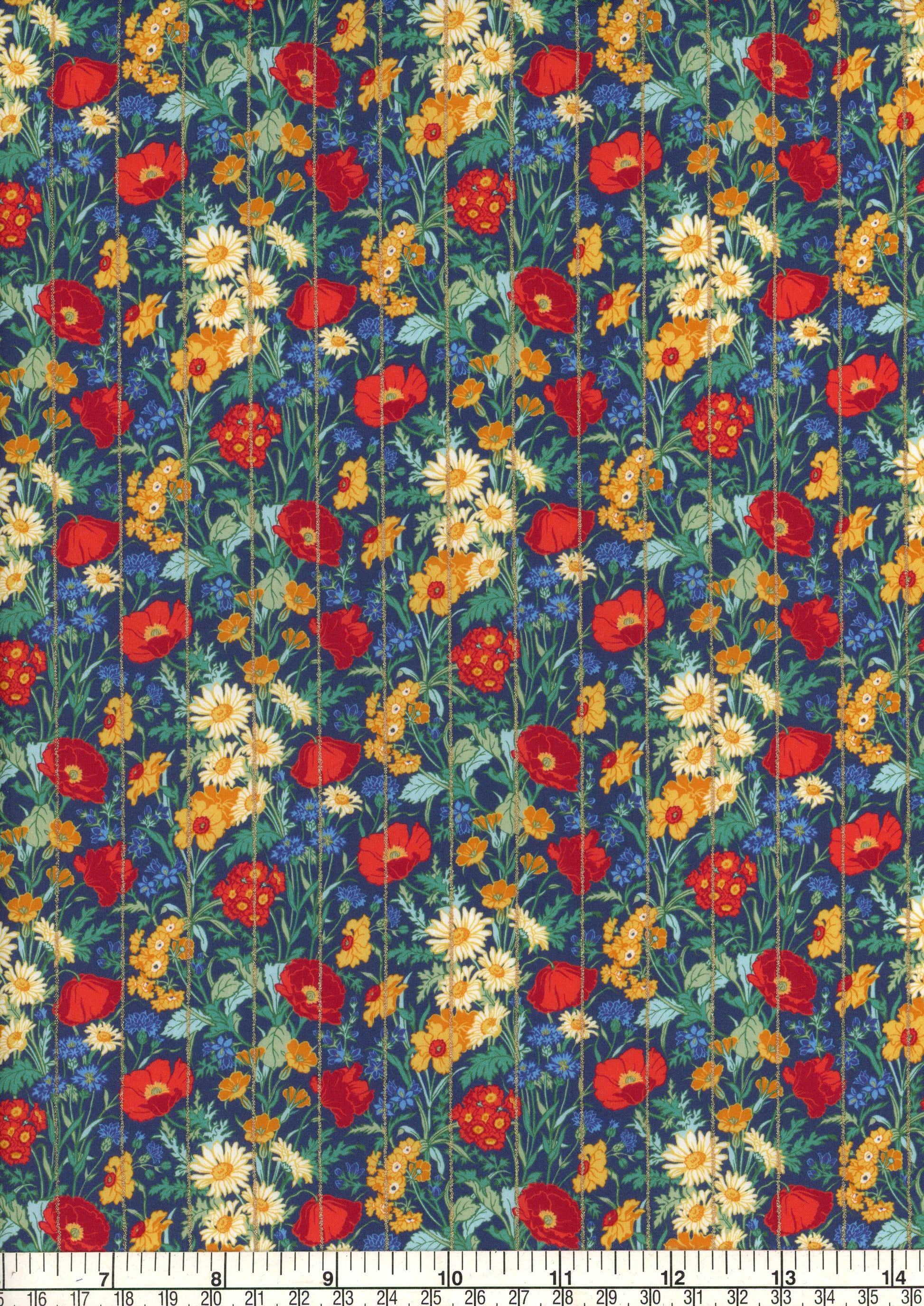 Liberty Fabrics Tana Lawn®. Classic Capsule 2024 Collection. Approximately 53" wide. 100% cotton. This fabric features metallic gold stripes.