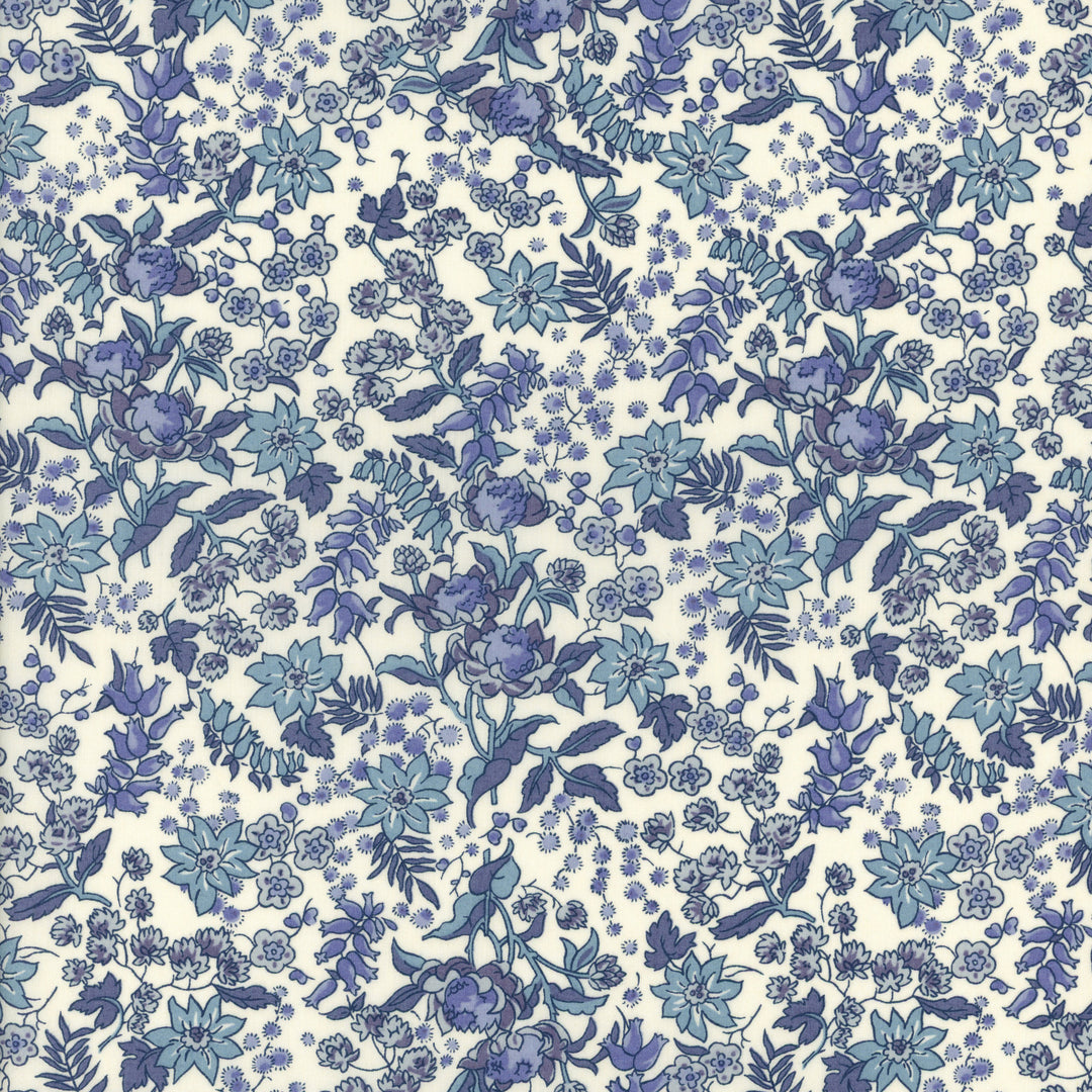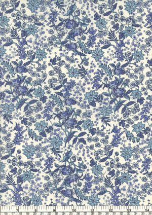 The earliest version of this small floral originates from a Liberty pattern book dating from the 1950s. Following an intricate botanical trail, Serruria features an array of meadow blooms including roses, bluebells, mimosa, clover, and starflowers, while its fine outlines and allover layout are reminiscent of Liberty's quintessential 1930s prints.