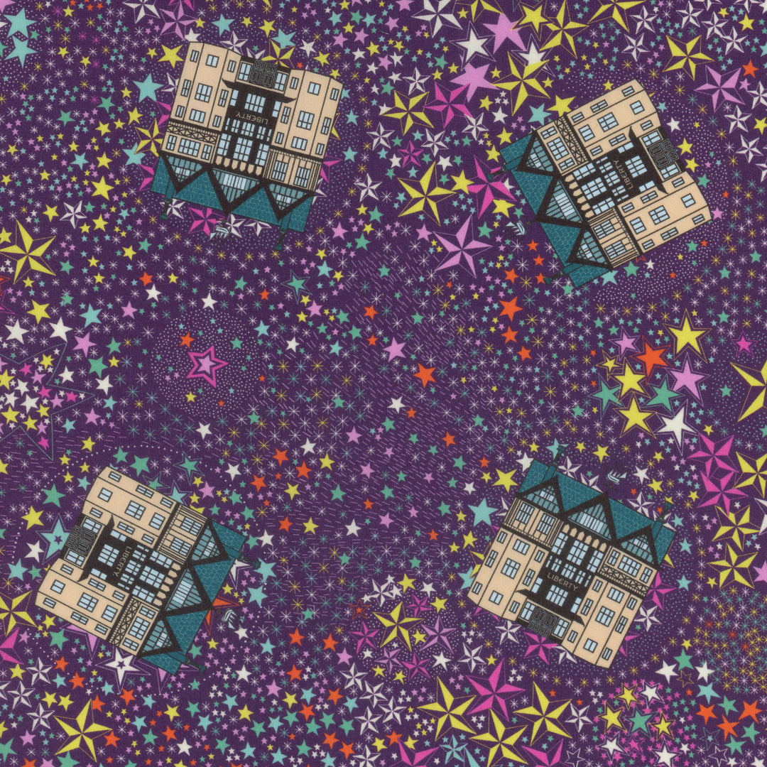 Originally created in the Liberty design studio for Autumn Winter 2011, this artwork has been reimagined to include the Liberty flagship for the Festive Collection. Featuring a galaxy of swirling stars in a whirl of vivid shades, Adeladja Belle showcases the charming details of the Regent Street building. Look out for the little windows under the eaves and the Mayflower ship weathervane on the roof.
