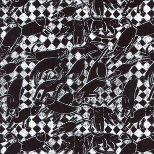 Joanne Jo often focuses her artwork on cats both wild and domestic. The loveable felines in our Catnap print are full of charisma as they cavort, stretch, and sleep in this conversational design that will bring a smile to your face. A hand drawn geometric pattern has been added into the background which also celebrates the imperfect nature of original artwork.