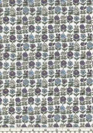 Created in the early 1990s under the direction of Pru Roskrow, who led Liberty’s textile design studio at the time, this neatly pruned botanical evokes the precision of meticulously manicured gardens. With an almost grid-like formation, its rows of honeysuckle, pansies, lilies, and roses create the impression of a check pattern when viewed from a distance.