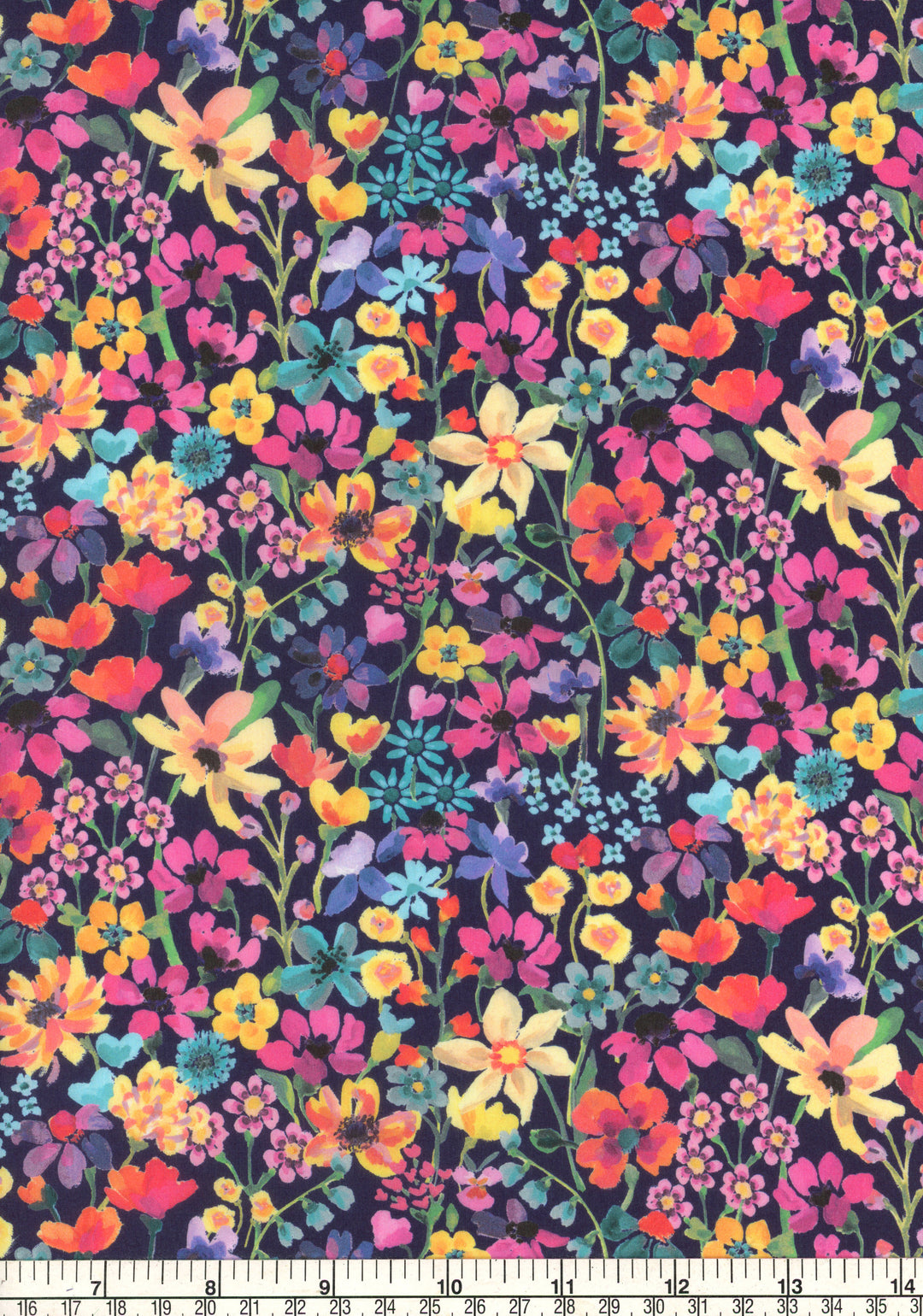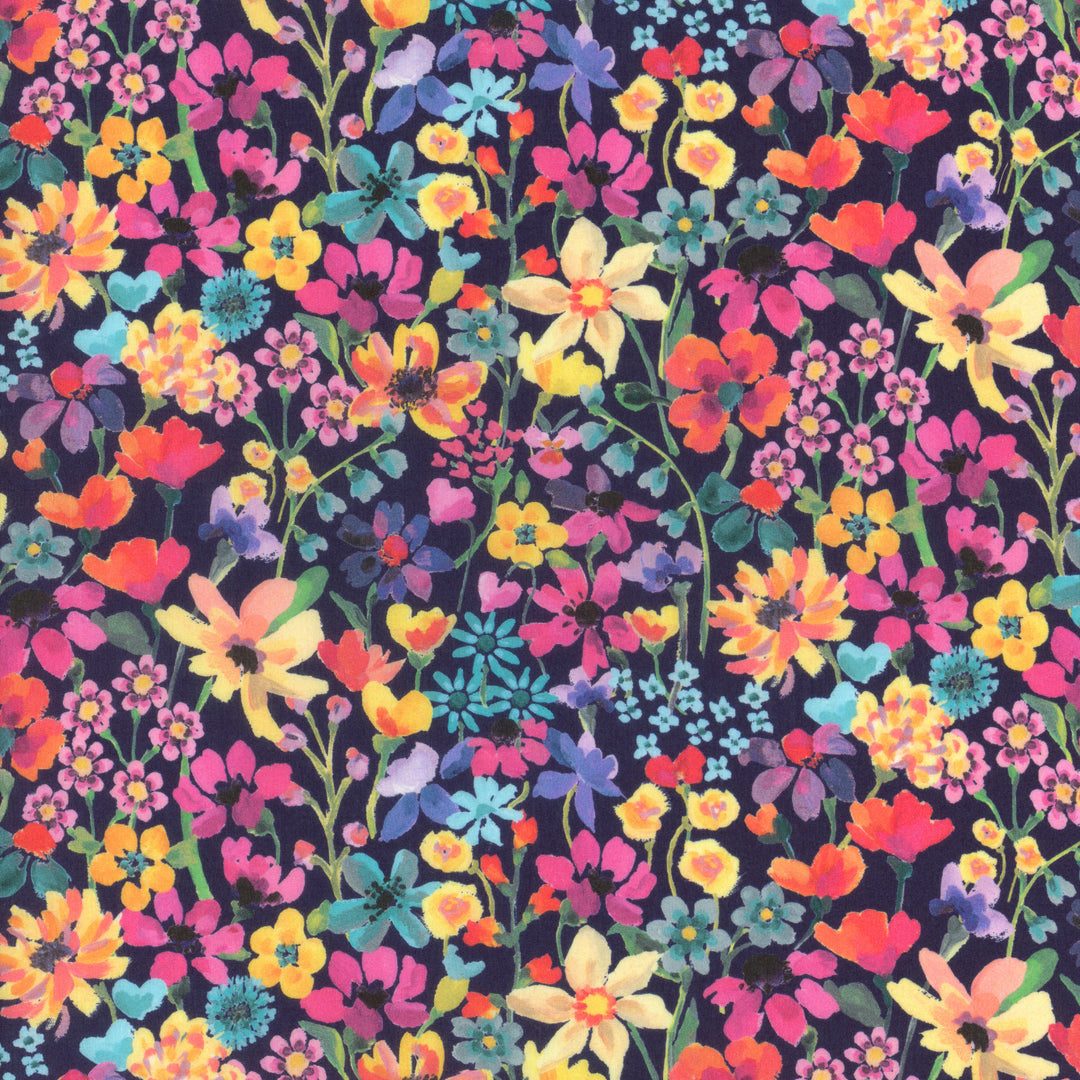 Painted in oils in the Liberty Fabrics studio in an Impressionistic style, Dreams of Summer is a magnificent display of high summer flowers, full of depth and texture. Blooming daisies, primroses, cornflowers, daffodils and forget-me-nots create a vibrant, multi-layered wild meadow.