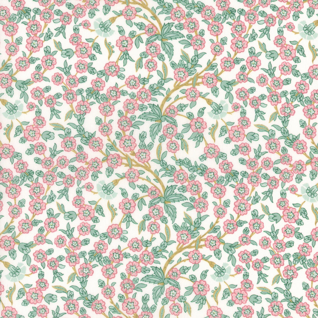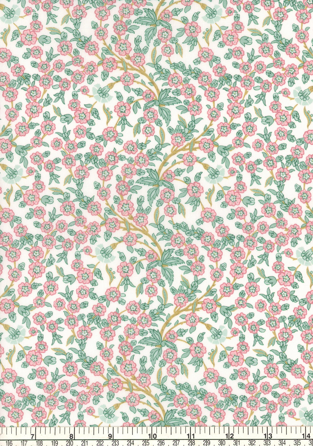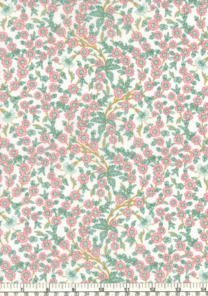 Originally created for Liberty in 1964, this trailing pattern features stylised cherry blossom flowers, buds, and carnations. The subtle sweeping movement is reminiscent of delicate branches dancing through a springtime breeze.
