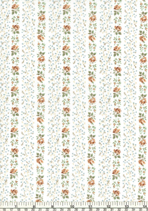 Drawing inspiration from a vintage Liberty design originating in 1957, Evie Stripe has been lovingly revived with a touch of modern finesse and recolored in a variety of light and dark palettes. Its exquisite blend of delicate buds and roses, intricately woven into a directional stripe layout, imbues the pattern with a uniquely eclectic charm.