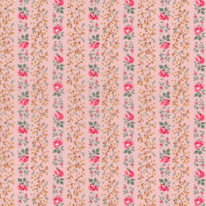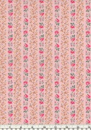 Drawing inspiration from a vintage Liberty design originating in 1957, Evie Stripe has been lovingly revived with a touch of modern finesse and recolored in a variety of light and dark palettes. Its exquisite blend of delicate buds and roses, intricately woven into a directional stripe layout, imbues the pattern with a uniquely eclectic charm.