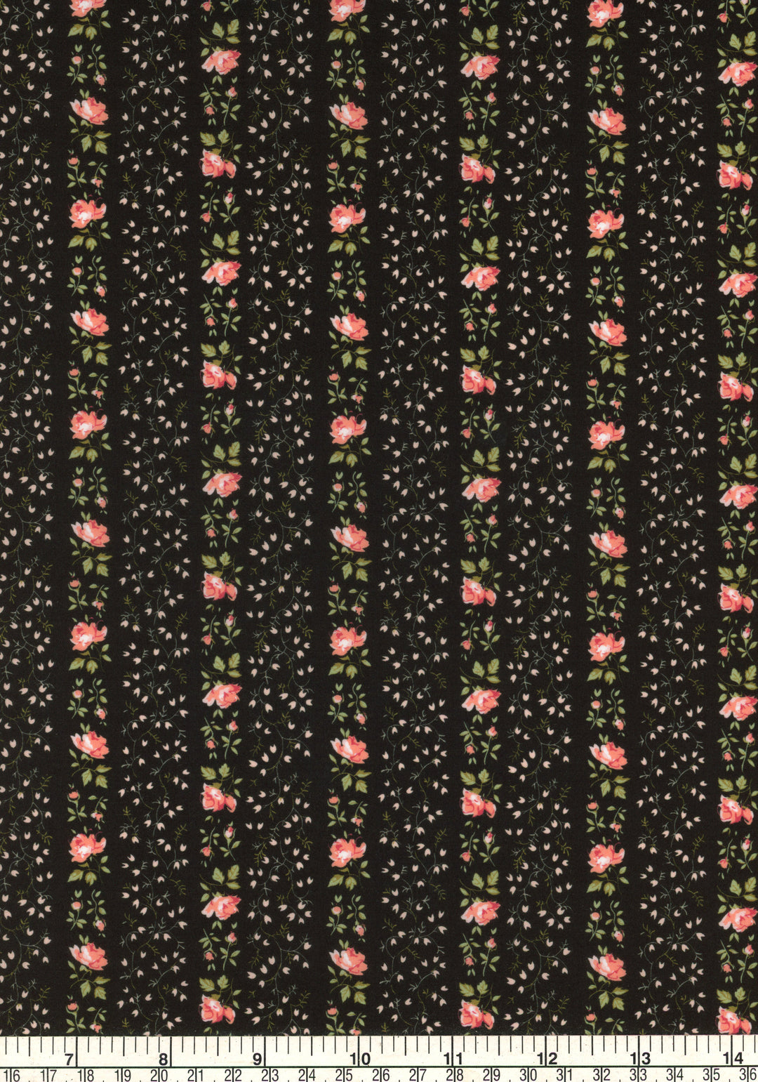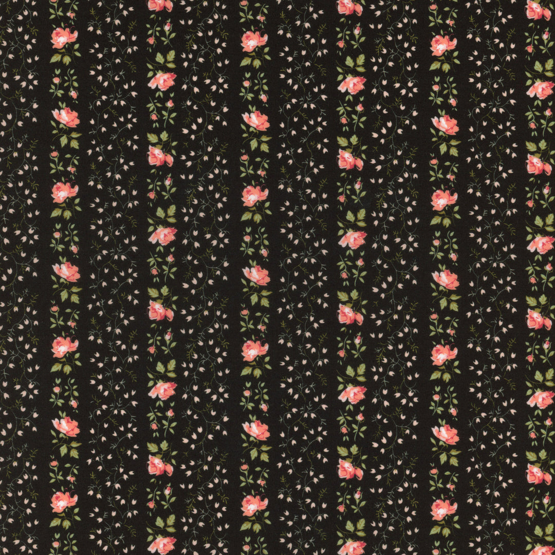 Drawing inspiration from a vintage Liberty design originating in 1957, Evie Stripe has been lovingly revived with a touch of modern finesse and recolored in a variety of light and dark palettes. Its exquisite blend of delicate buds and roses, intricately woven into a directional stripe layout, imbues the pattern with a uniquely eclectic charm.