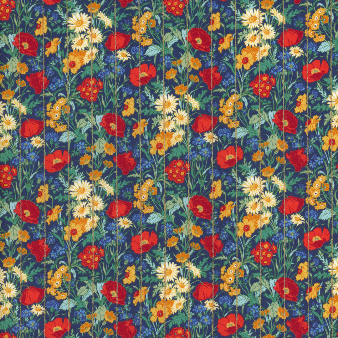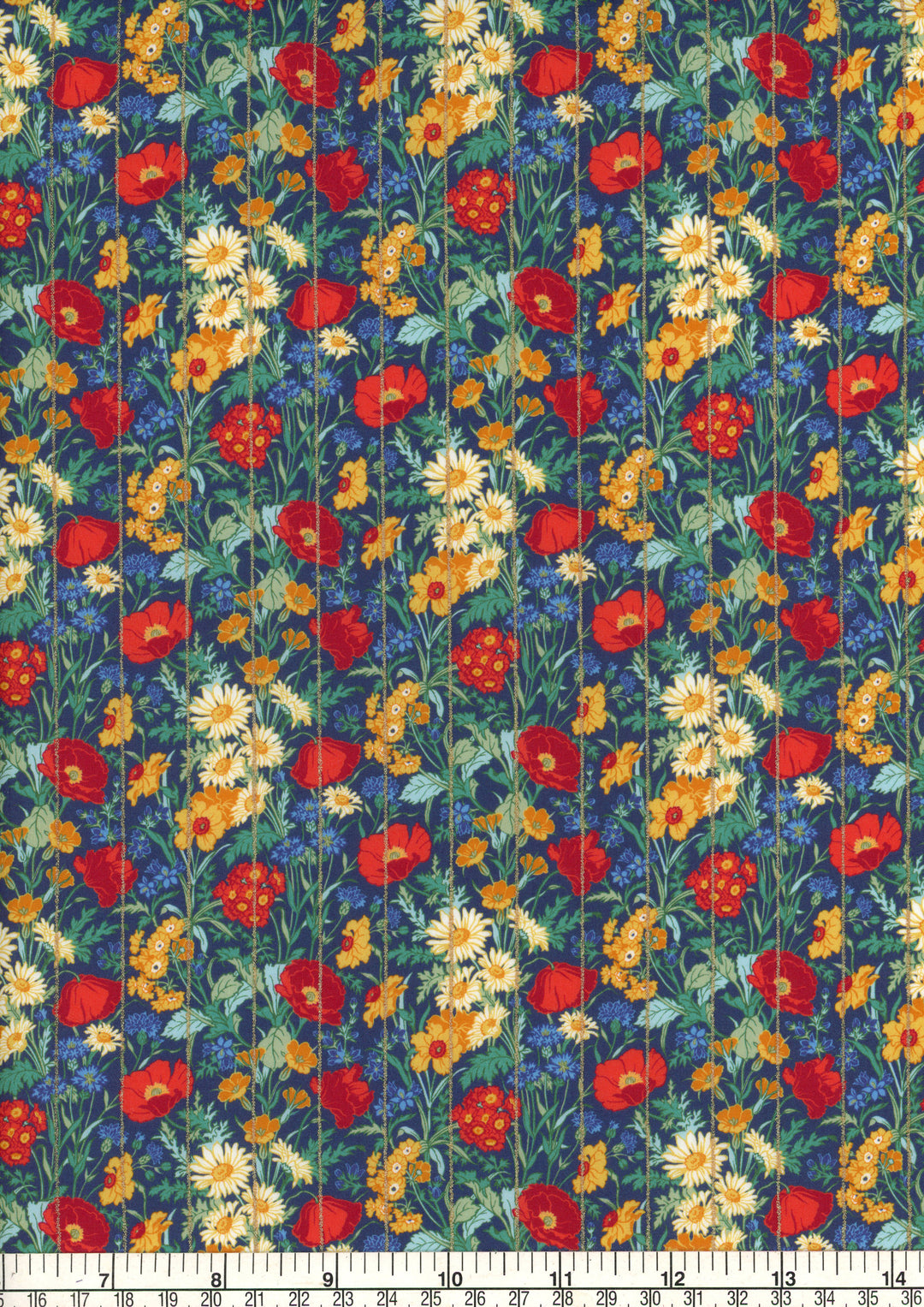 Liberty Fabrics Tana Lawn®. Classic Capsule 2024 Collection. Approximately 52" wide. 100% cotton. This fabric features metallic gold stripes.