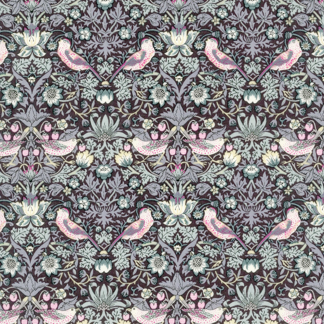 Strawberry Thief was designed by William Morris in 1883. It was part of a group of designs incorporating animals with flowers. Liberty first produced it as a furnishing fabric in 1979 and it has since been redrawn for Tana Lawn on a smaller scale. Strawberry Thief Liberty fabric has been on classic Tana since 1955.